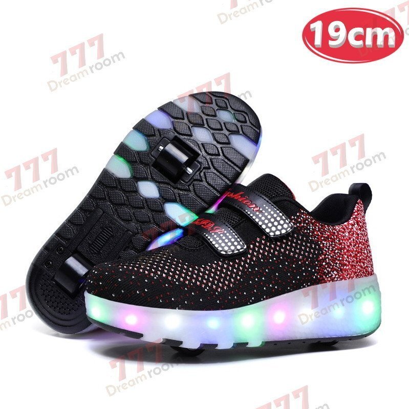 1スタ☆光る☆LED ライトアップスニーカー&ローラーシューズ 一体型 【K-375ブラック 19cm】夜間 スケート靴 反射材 ジョギング 自転車