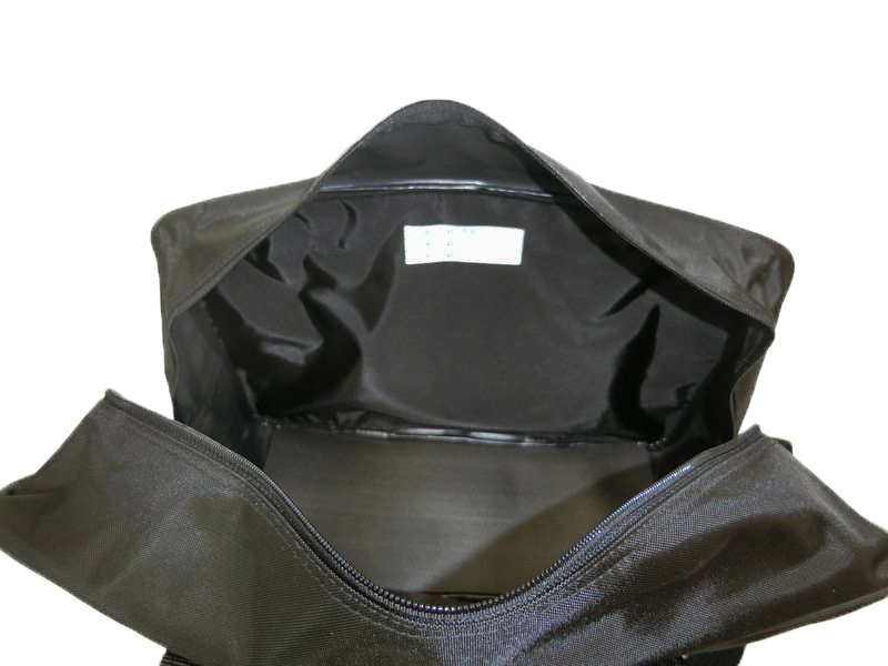 (6)外装:前ポケット(15cmX19)1つ、裏面:ファスナーポケット(47cmX30)1つ。