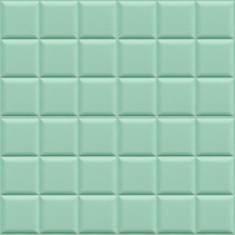 【50枚】高品質 3D クッション 壁 シール スクエア×グリーン レザー タイル調 糊付き リメイク 60×60cm 耐水 抗菌 傷防止