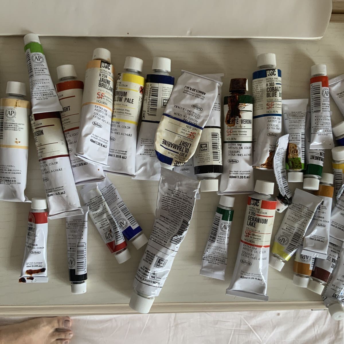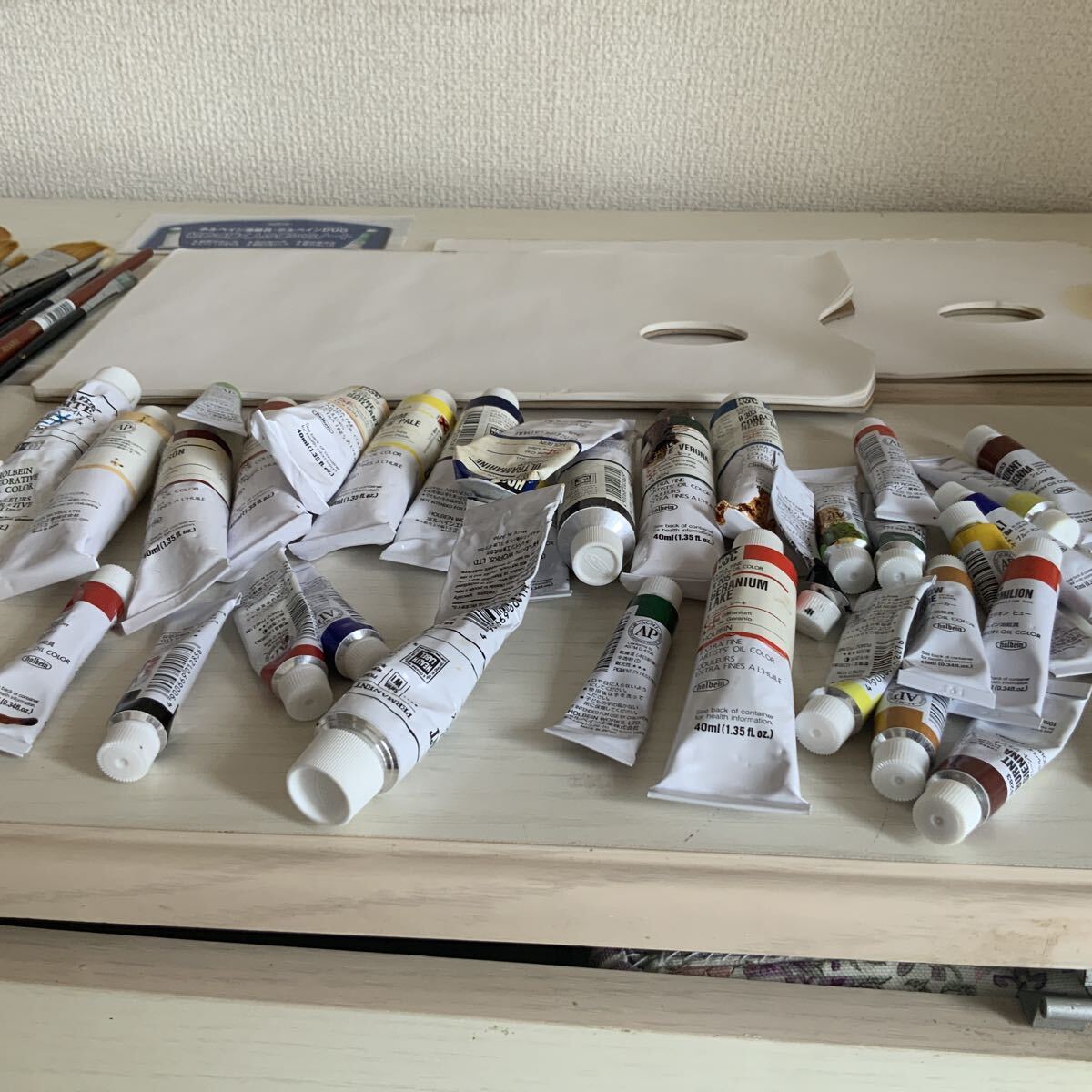 20年ほど前に2回油絵教室に通いました。その時初心者基本セットを2個購入しましたので、この箱には2倍入っています。