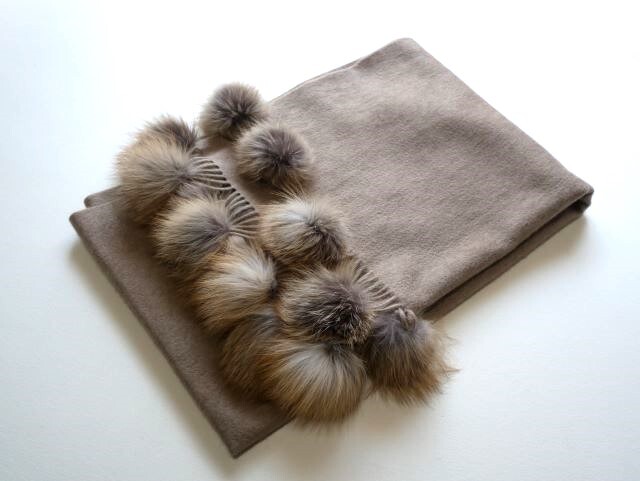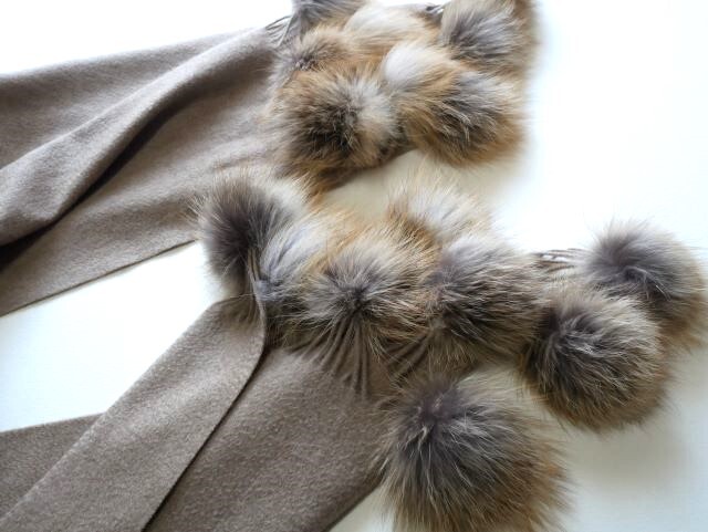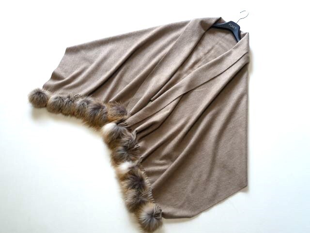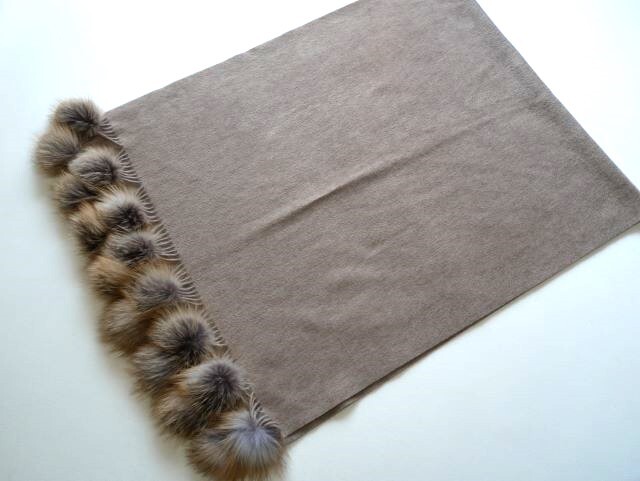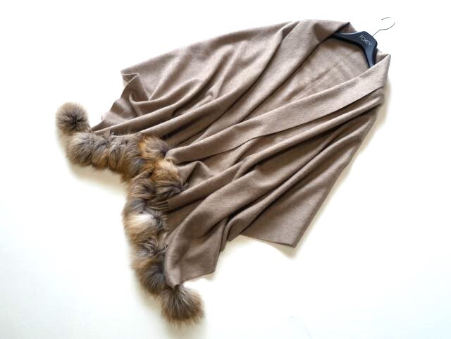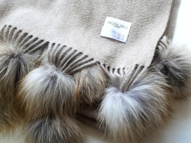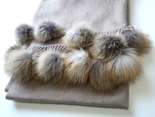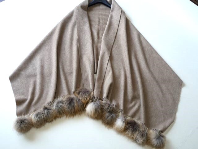 NATURAL BASIC♪日本製 KAWABE♪上質カシミヤ×フォックスファーボンボン 大判ショール