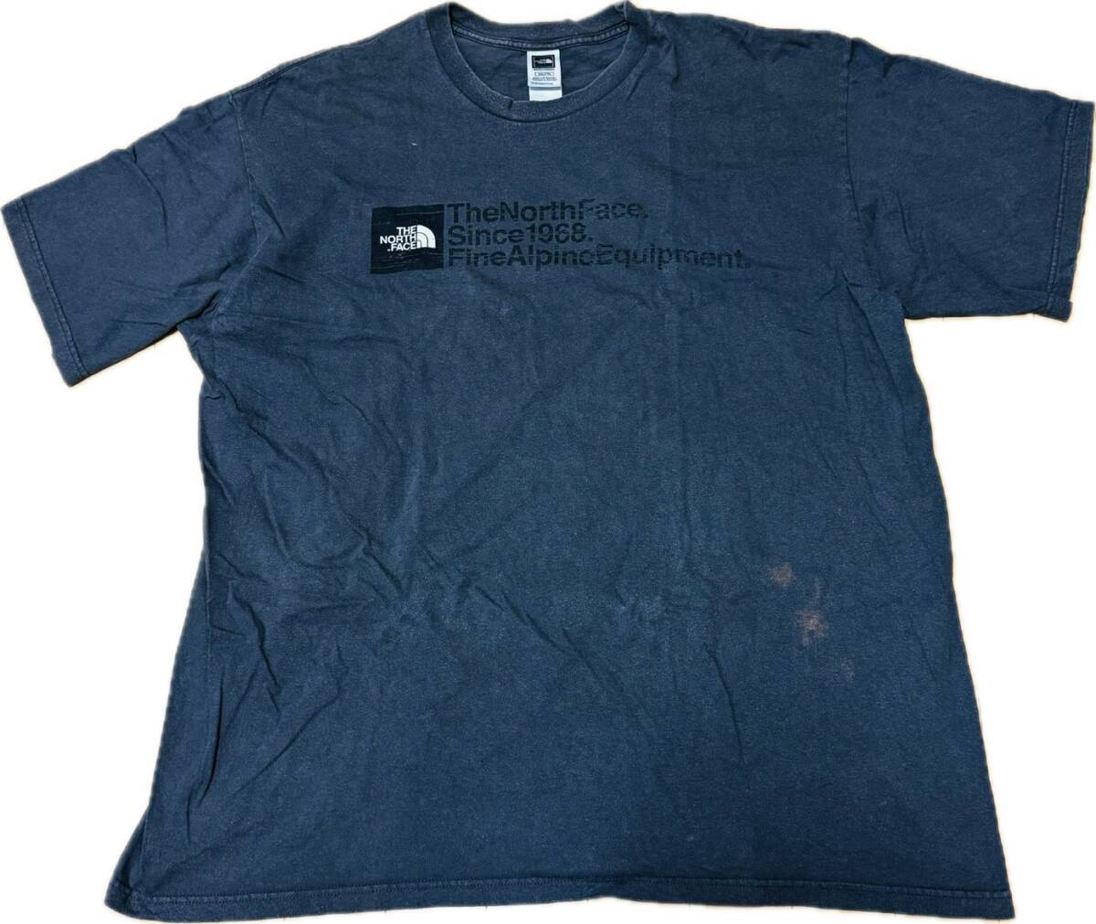 THE NORTH FACE ノースフェイス Tシャツ 半袖 ロゴプリントメンズ XXLサイズ 濃いグレー 古着 ノースフェイスの定番ロゴ入りTシャツです。 左脇腹部分にシミがあります(写真をご確認ください)。 【商品詳細】