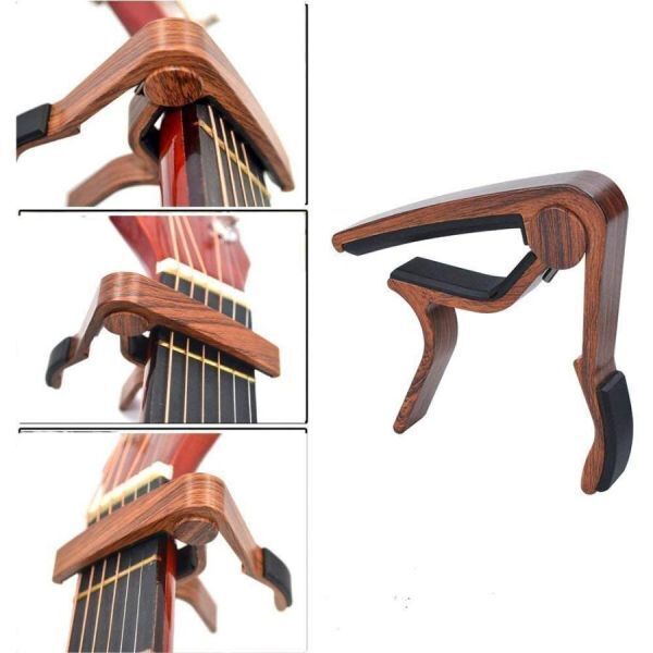 ギターカポタスト アコギカポ ワンタッチ式 guitar capo エレキギター/ウクレレ/アコースティックギター用カポタスト(木目調)