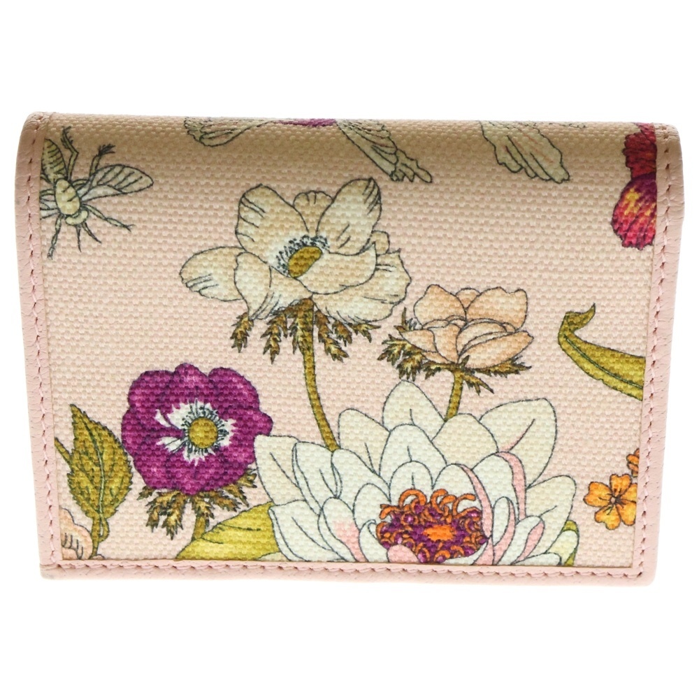 品名GGマーモント 花柄 フラワー 二つ折り財布 コンパクトウォレット コインケース ピンク ゴールド金具 キャンバス 577347