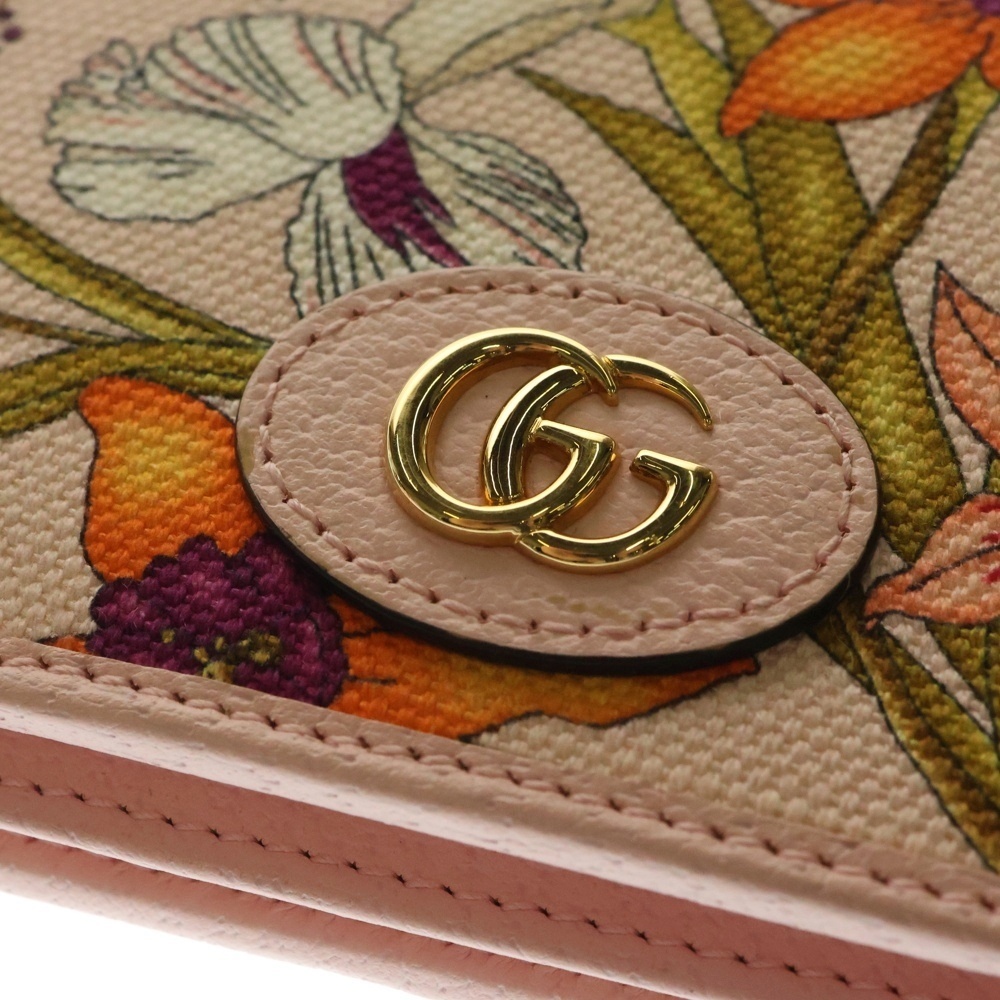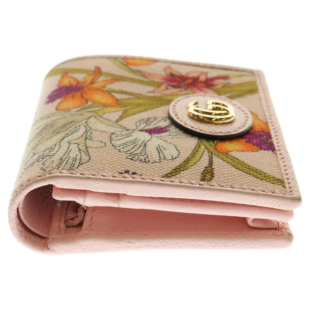 GUCCI グッチ GGマーモント 花柄 フラワー 二つ折り財布 コンパクトウォレット コインケース ピンク ゴールド金具 キャンバス 577347