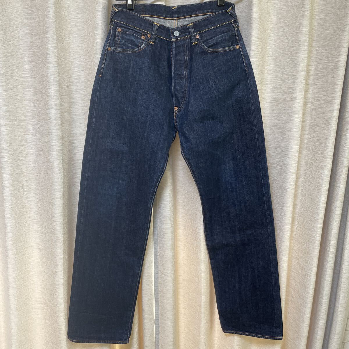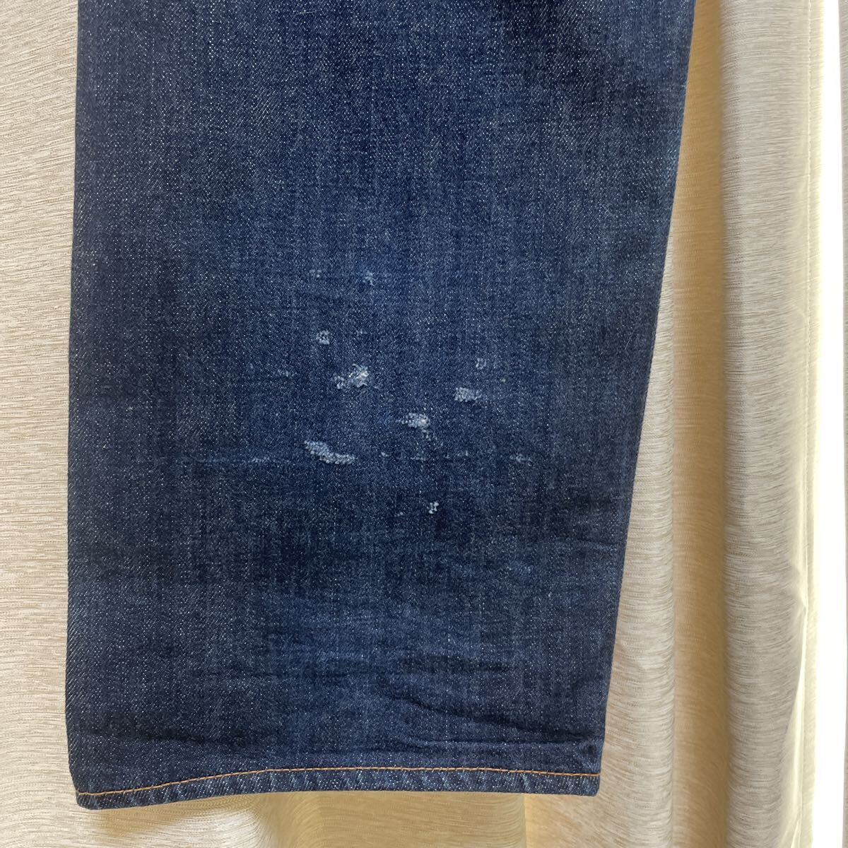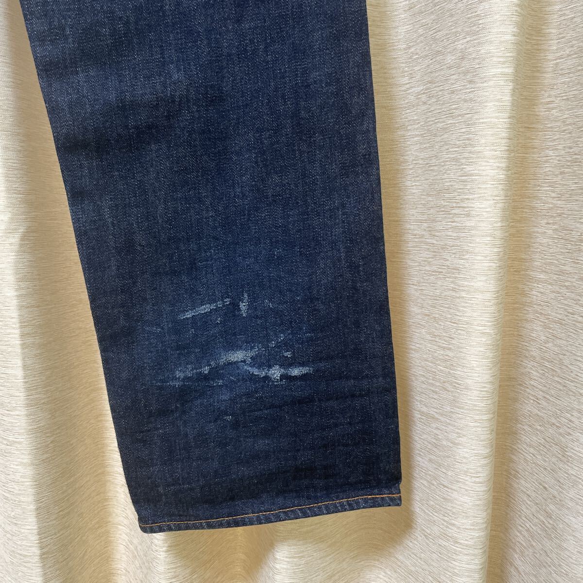 数年前に購入しましたが、丈が合わずに数回使用しました。ビンテージ加工してありカモメマークおよびスソの後ろに傷加工あります!