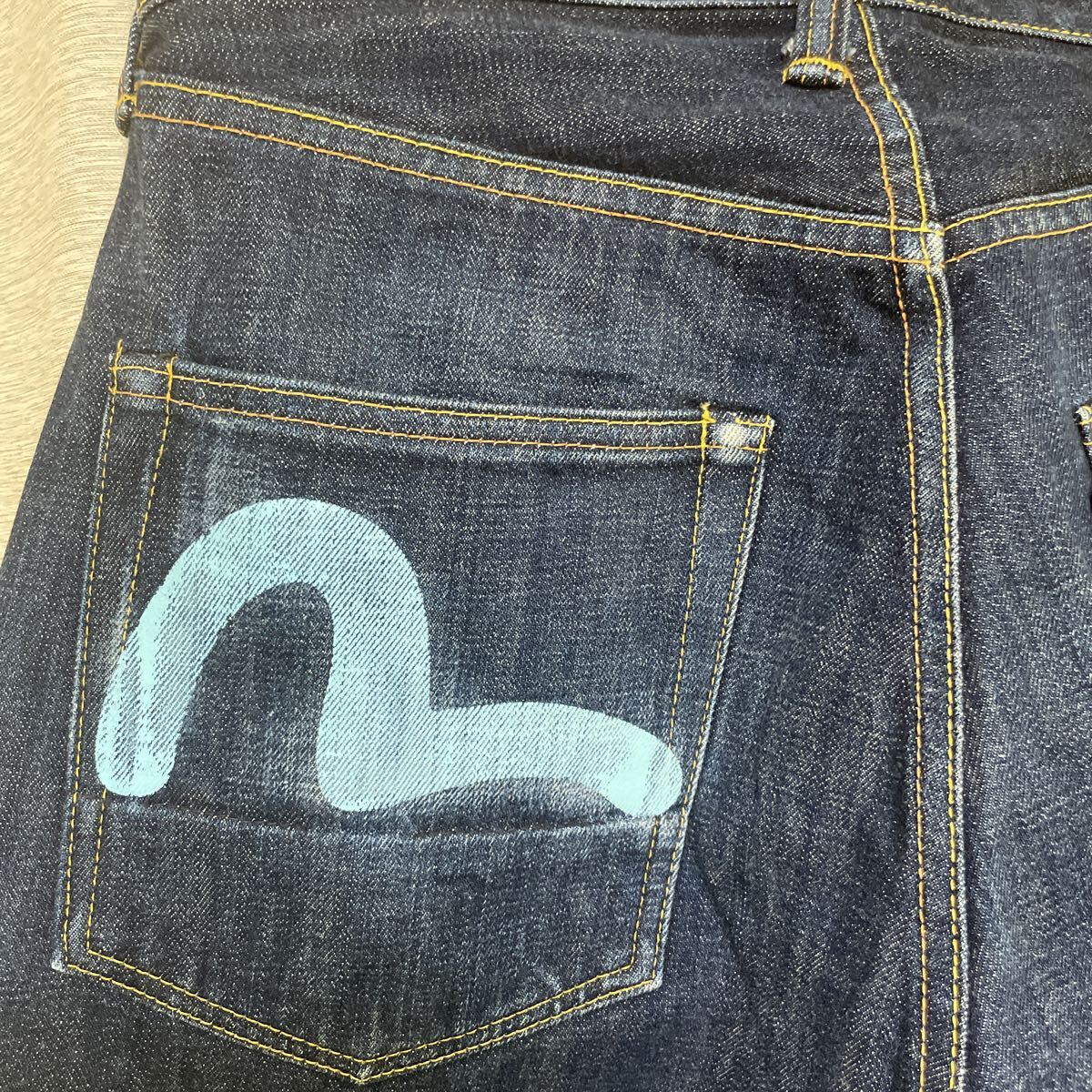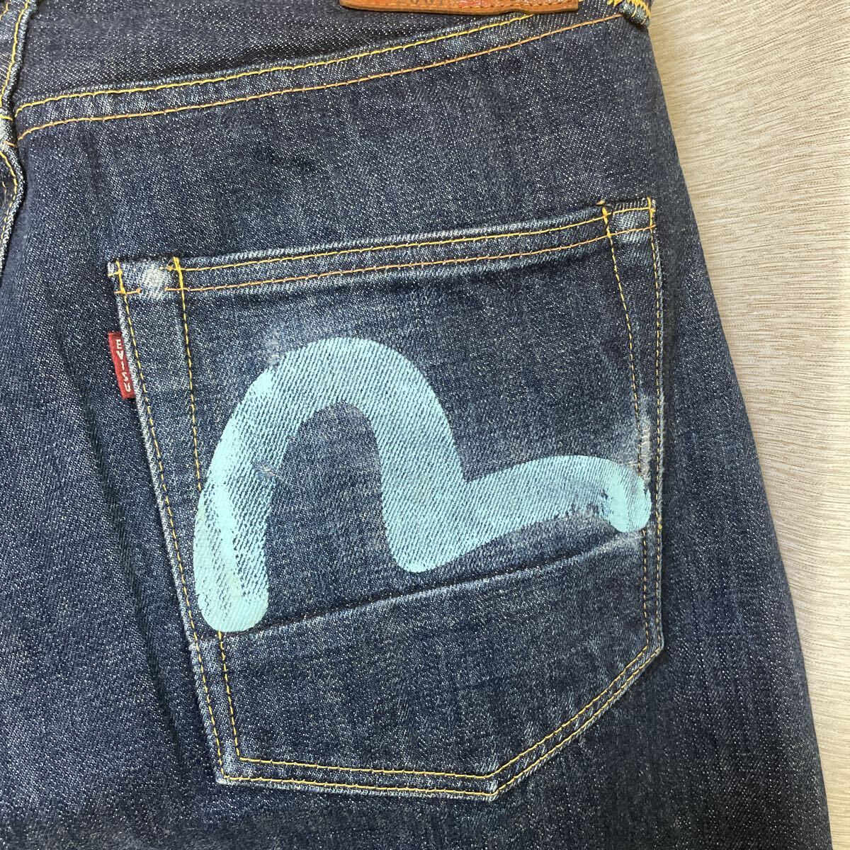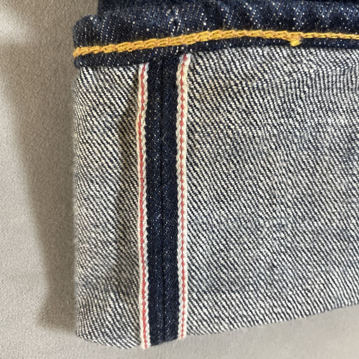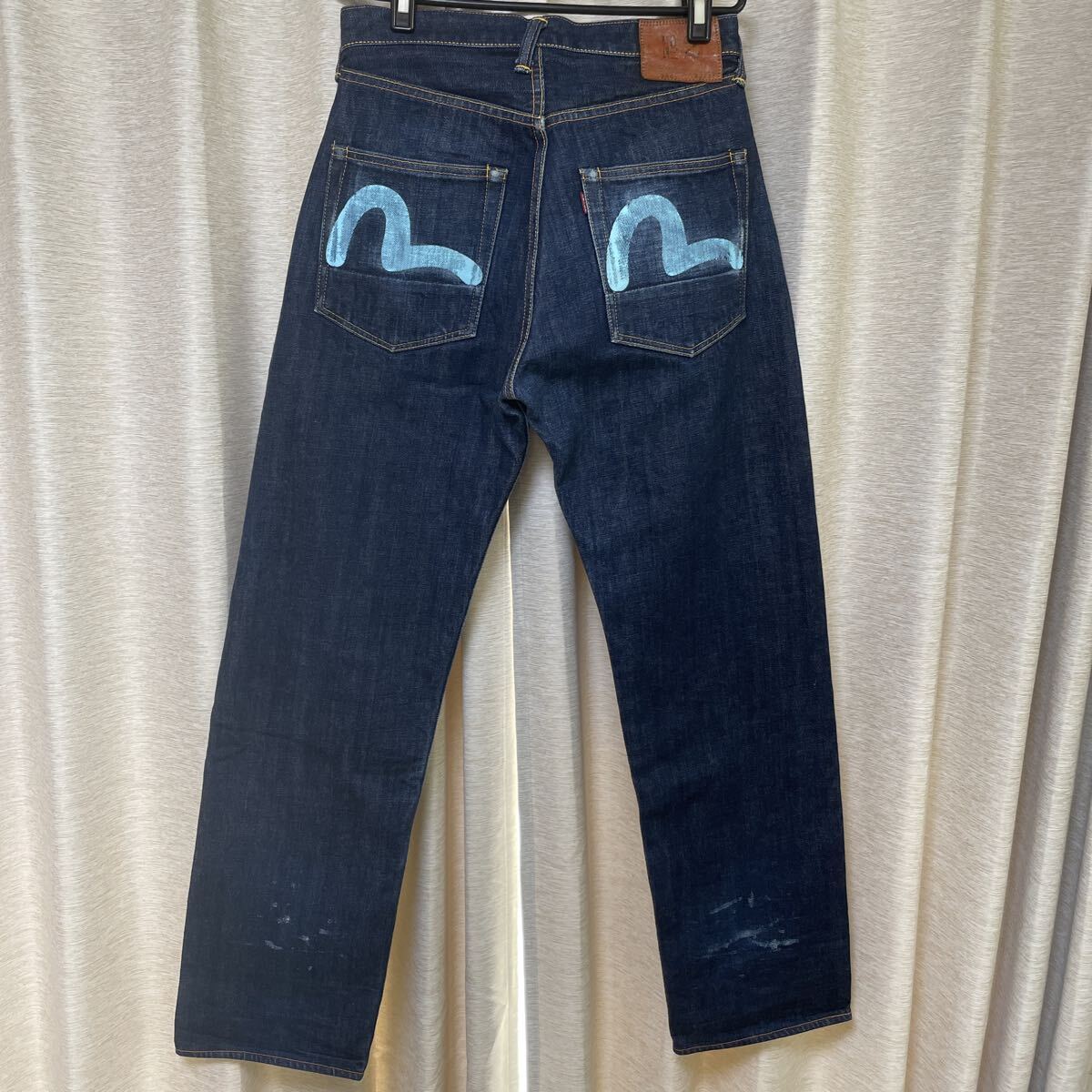 数年前に購入しましたが、丈が合わずに数回使用しました。ビンテージ加工してありカモメマークおよびスソの後ろに傷加工あります!