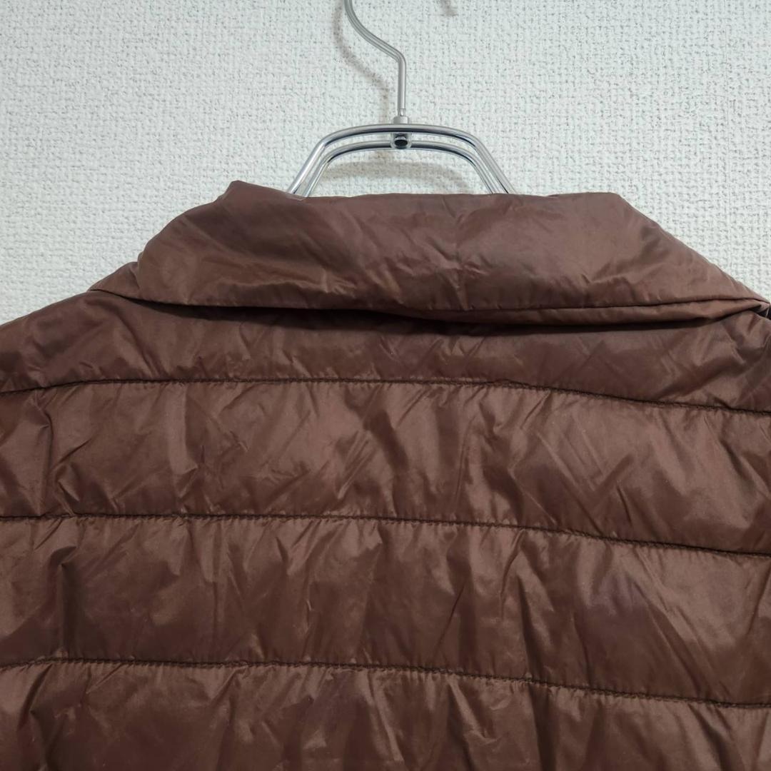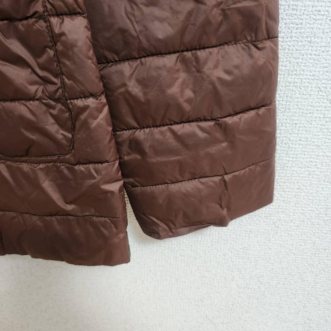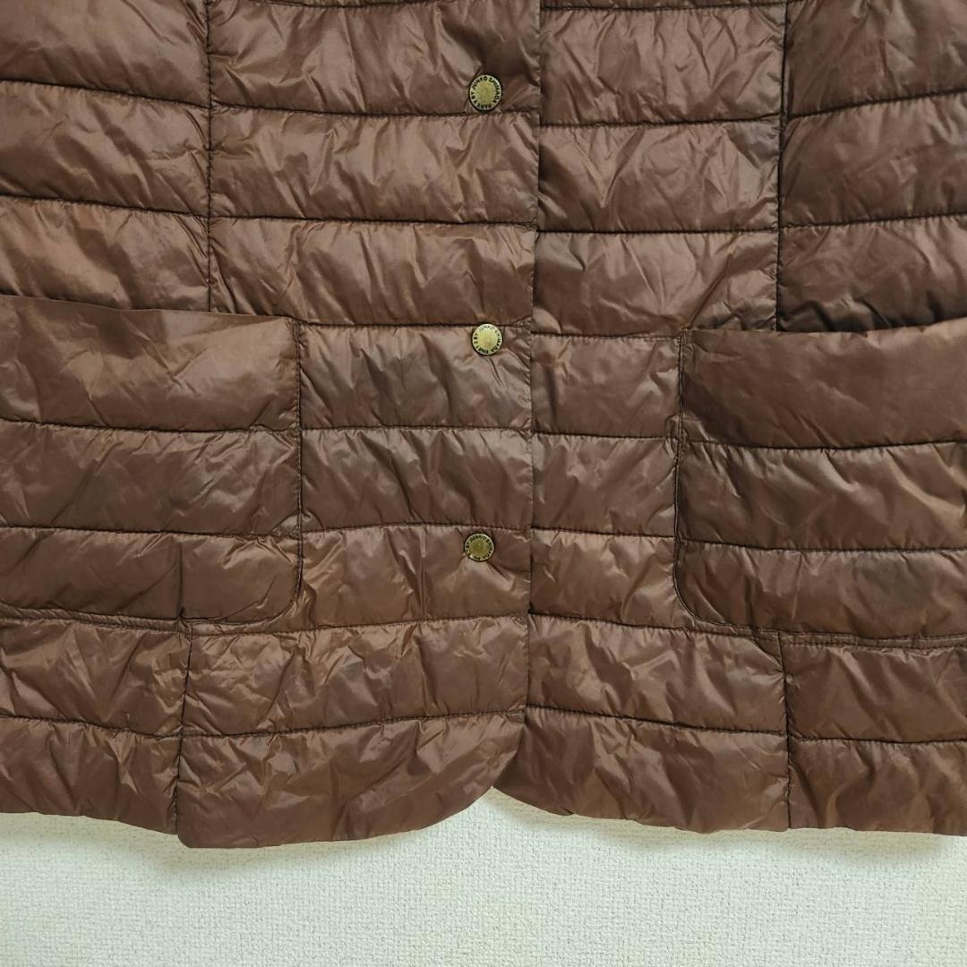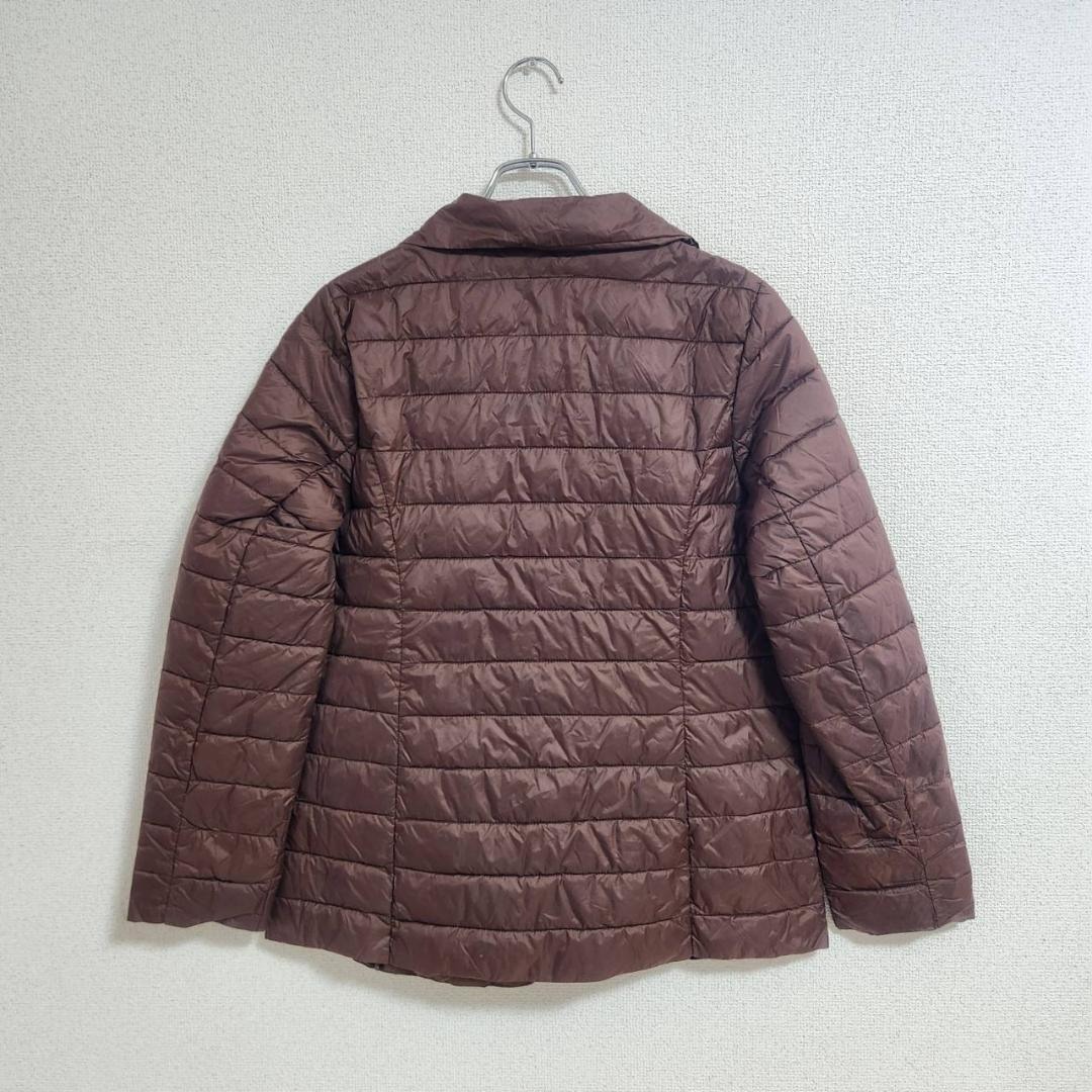 JUNKO SHIMADA(ジュンコシマダ)の軽量ダウンジャケットです。落ち着いたブラウンカラーで、大きめの襟とフロントポケットがデザインポイント。