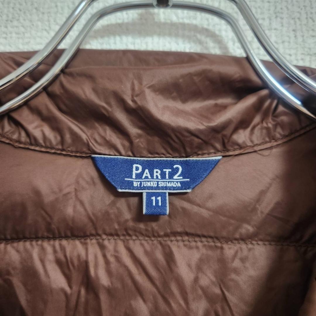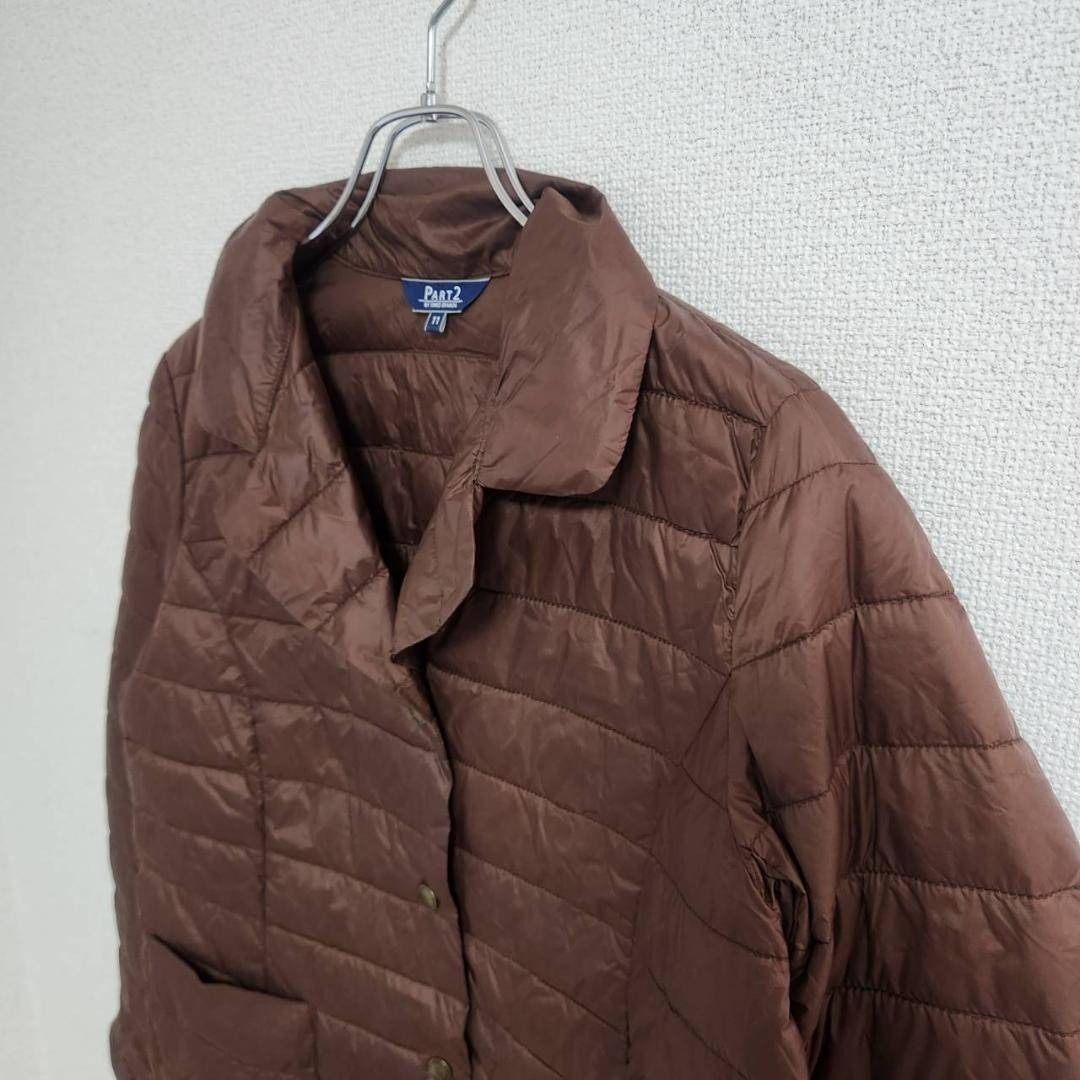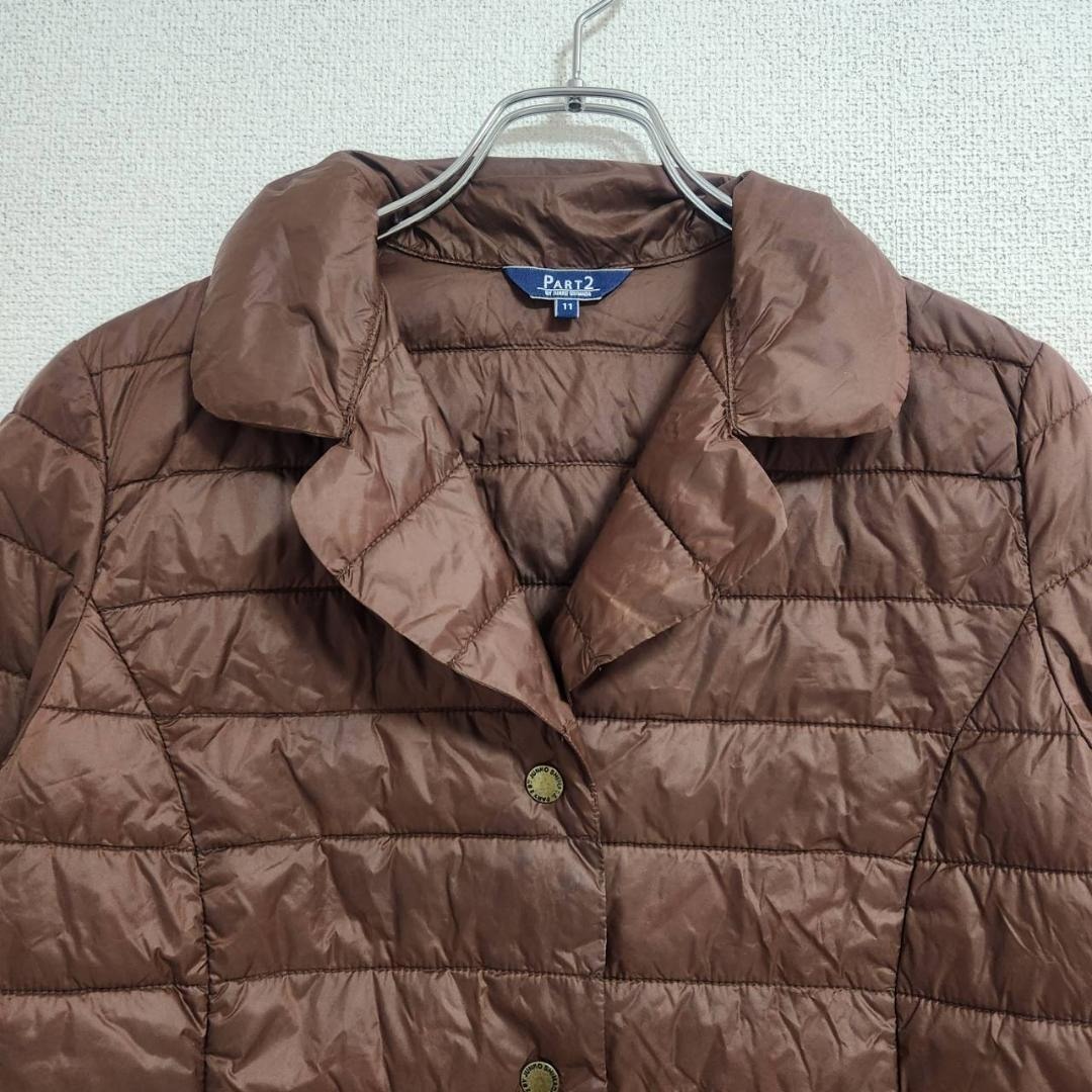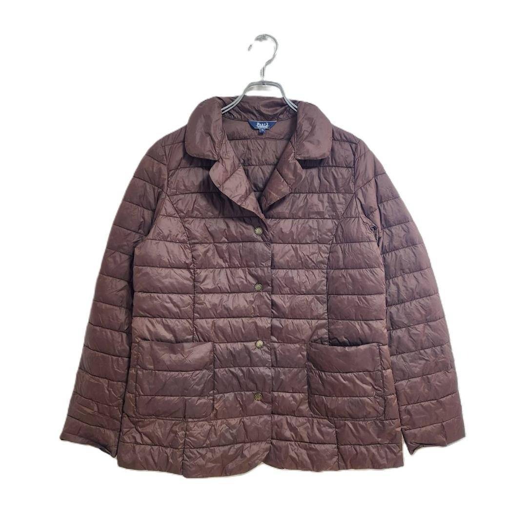 JUNKO SHIMADA(ジュンコシマダ)の軽量ダウンジャケットです。落ち着いたブラウンカラーで、大きめの襟とフロントポケットがデザインポイント。