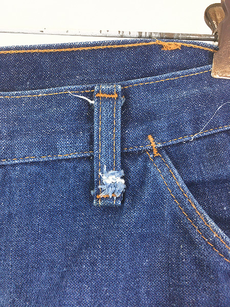 まだデニム糊が残る“真紺”100%コットンブロークンデニム・ピスネーム Rのみ・Idealジップフライ・アウトシーム ダブルステッチ・フレアシルエット。
