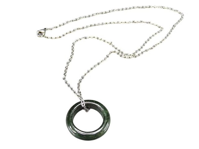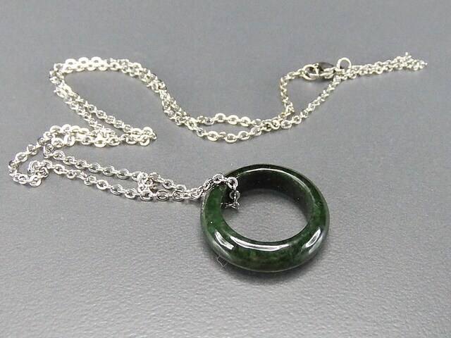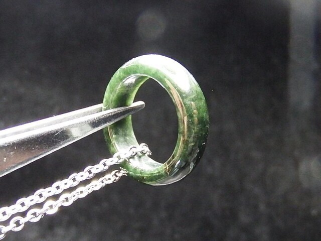 濃いひすい本翡翠指輪バンドリング天然石約7.5号チェーン付きネックレスプライム