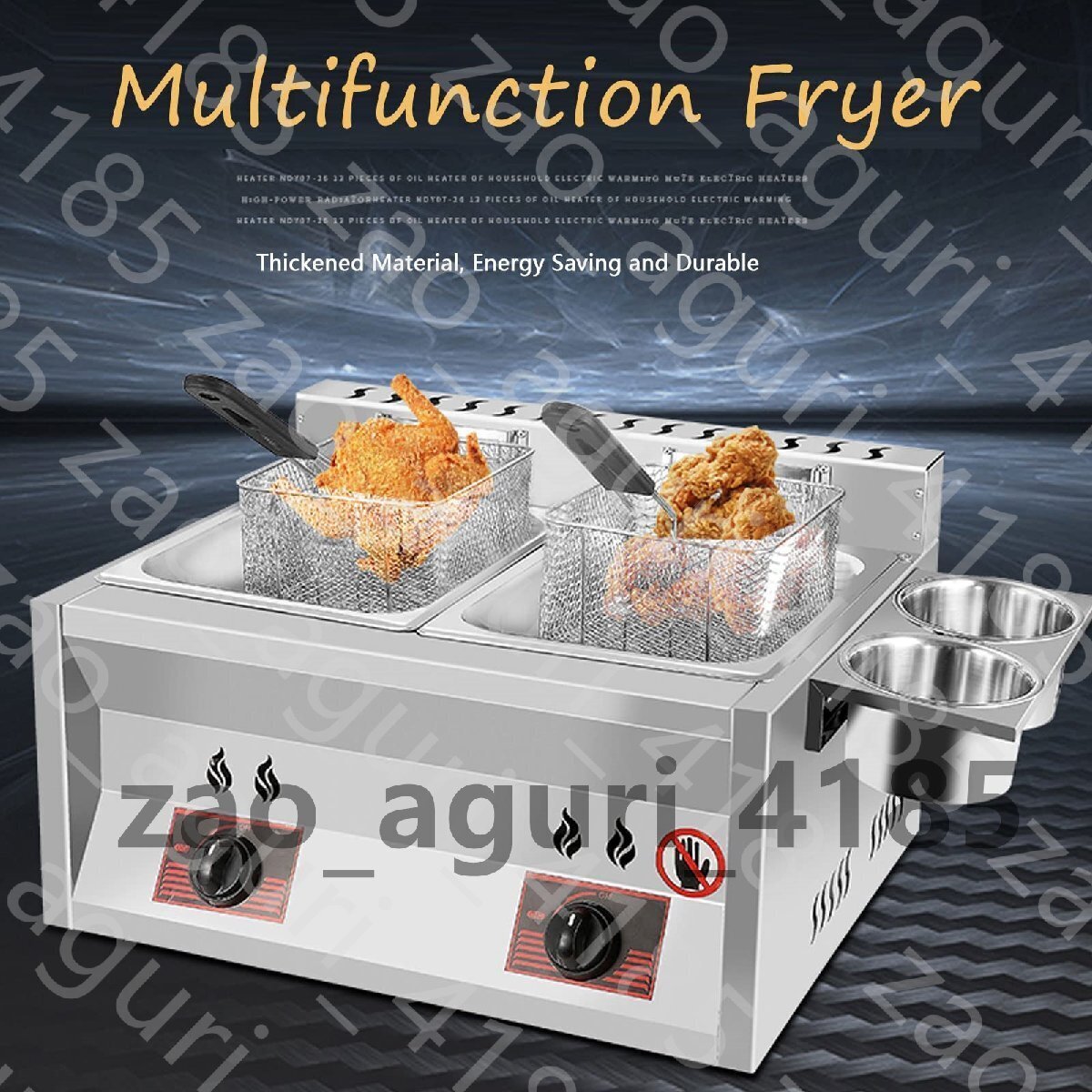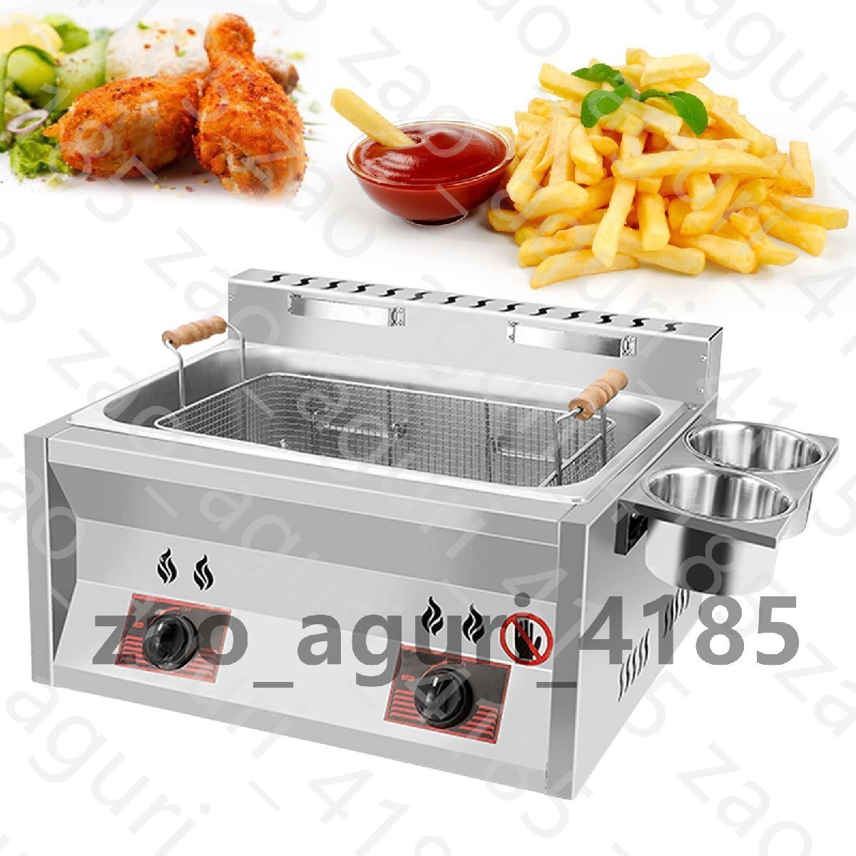 安全設計 ガスフライヤー ステンレス鋼 バスケット付と調味料トラフ 卓上フライヤー 厚い ステンレス鋼 大型 石炭ガス フライヤー 揚げ物鍋 業務・家庭用フライヤー お掃除楽々 揚げ物器 Style4