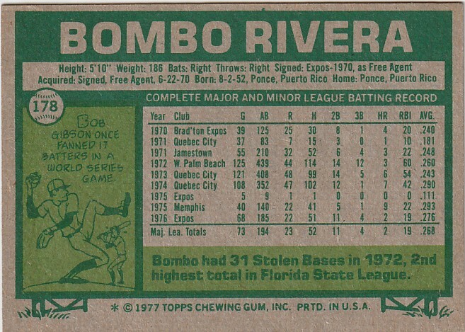 来日外国人 近鉄 バンボ 1977 Topps 178 RC