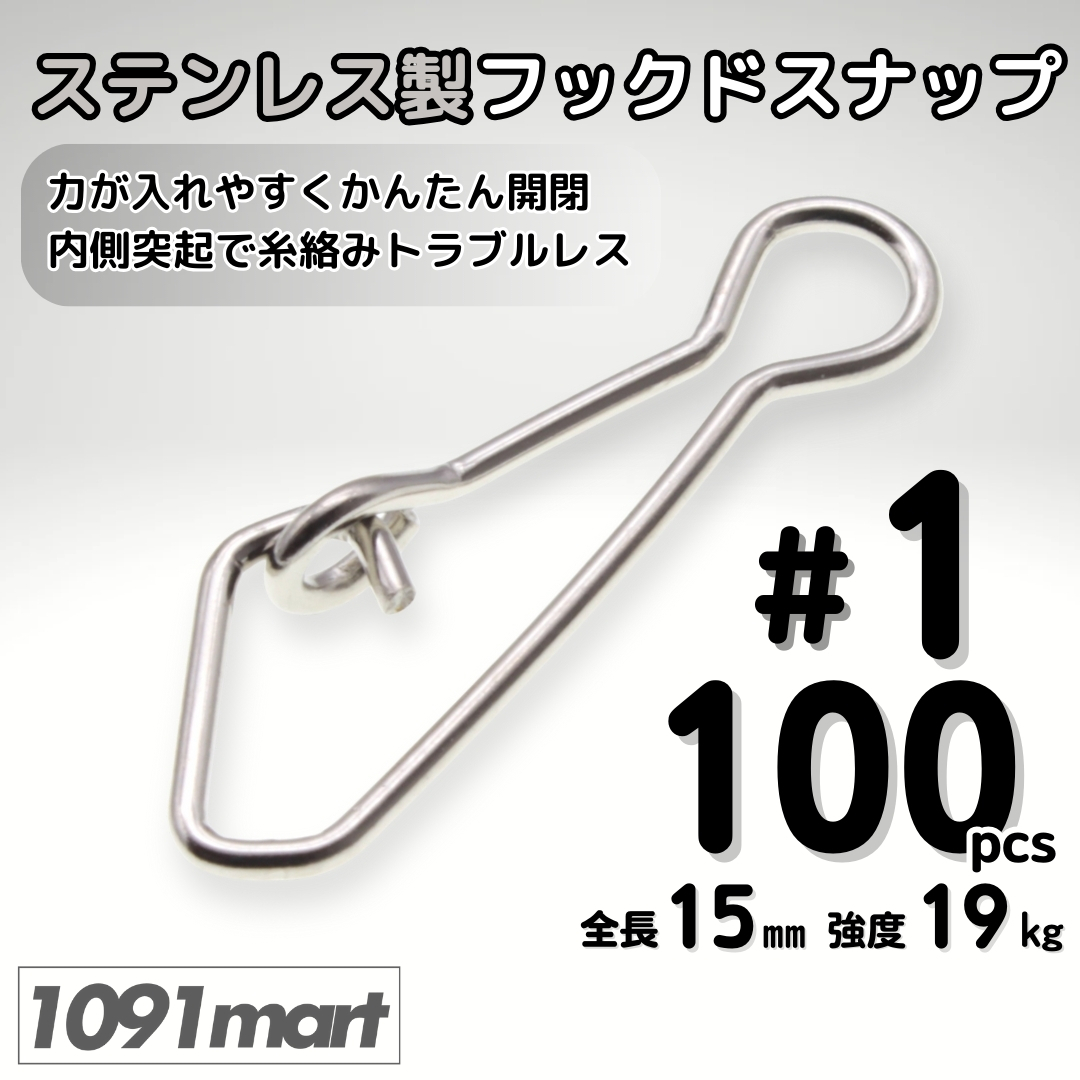 ステンレス製 フックドスナップ #1 100個セット インタースナップ ルアー釣り エギング かんたん開閉 すり抜け抜群!【1091mart】
