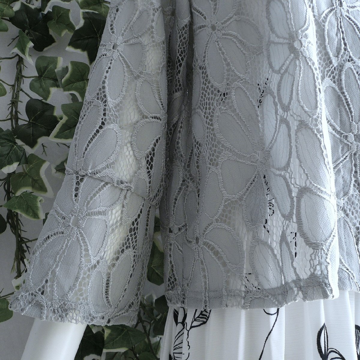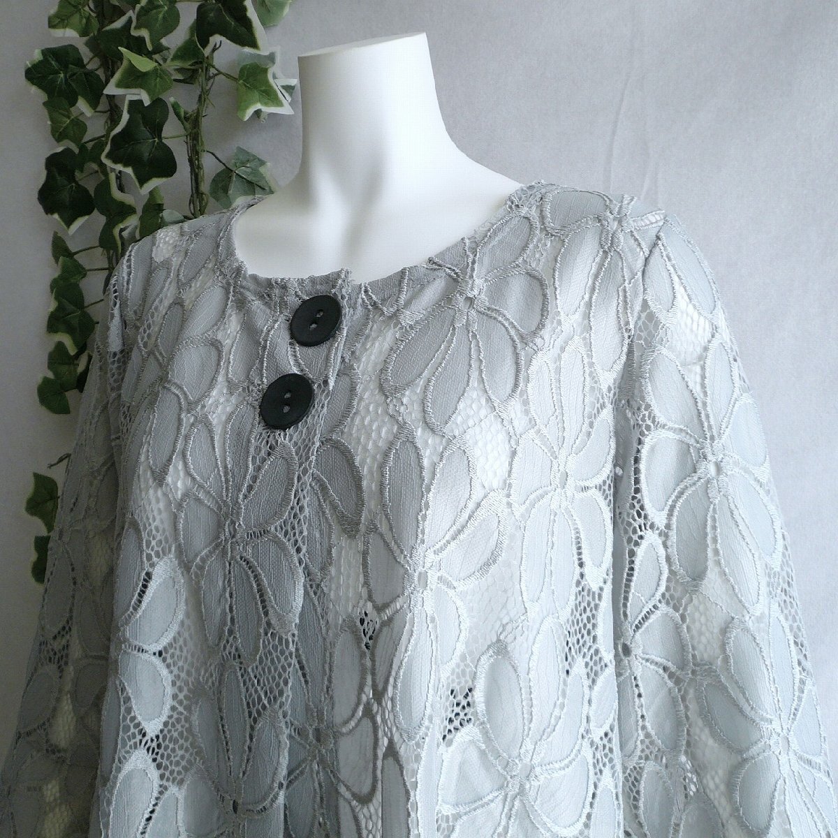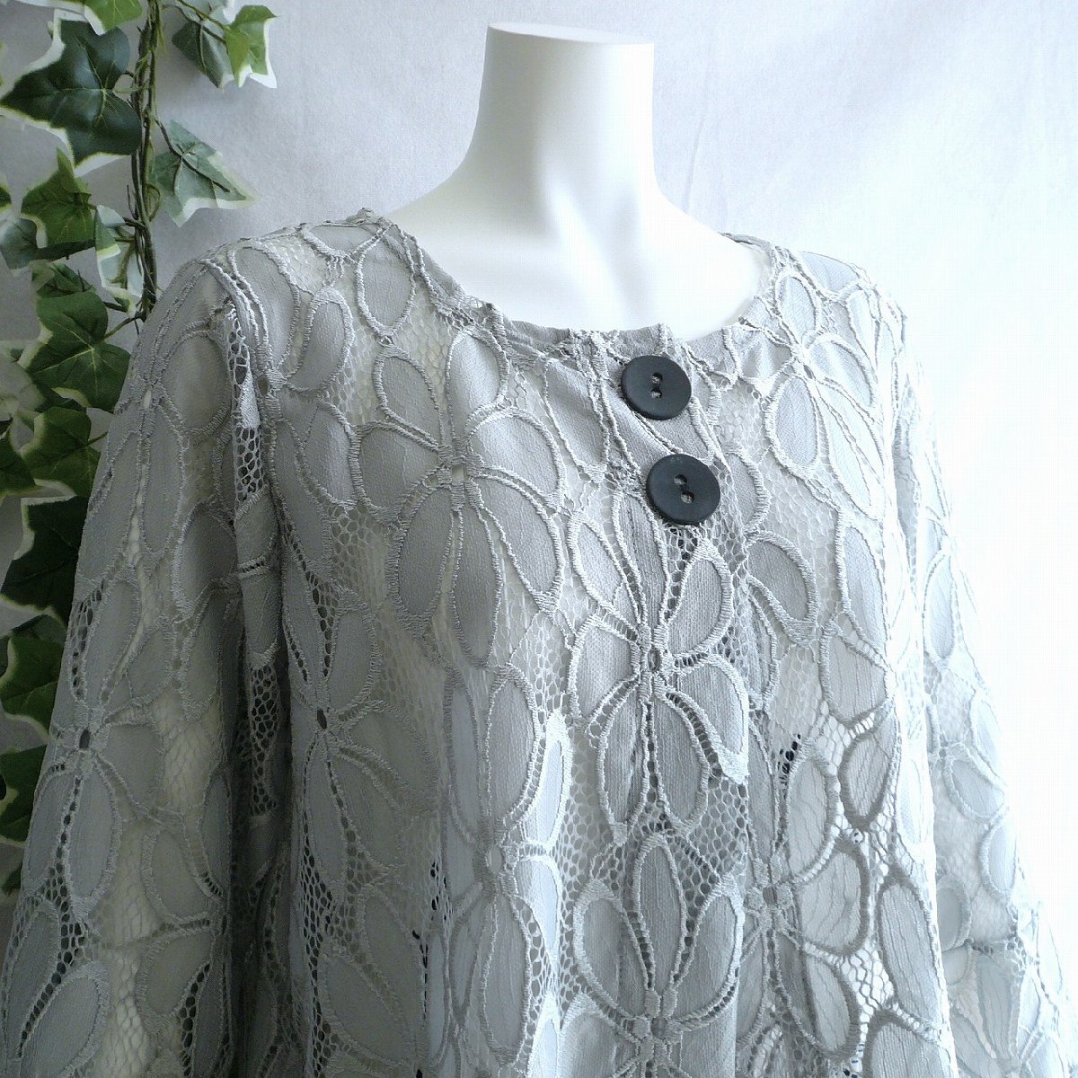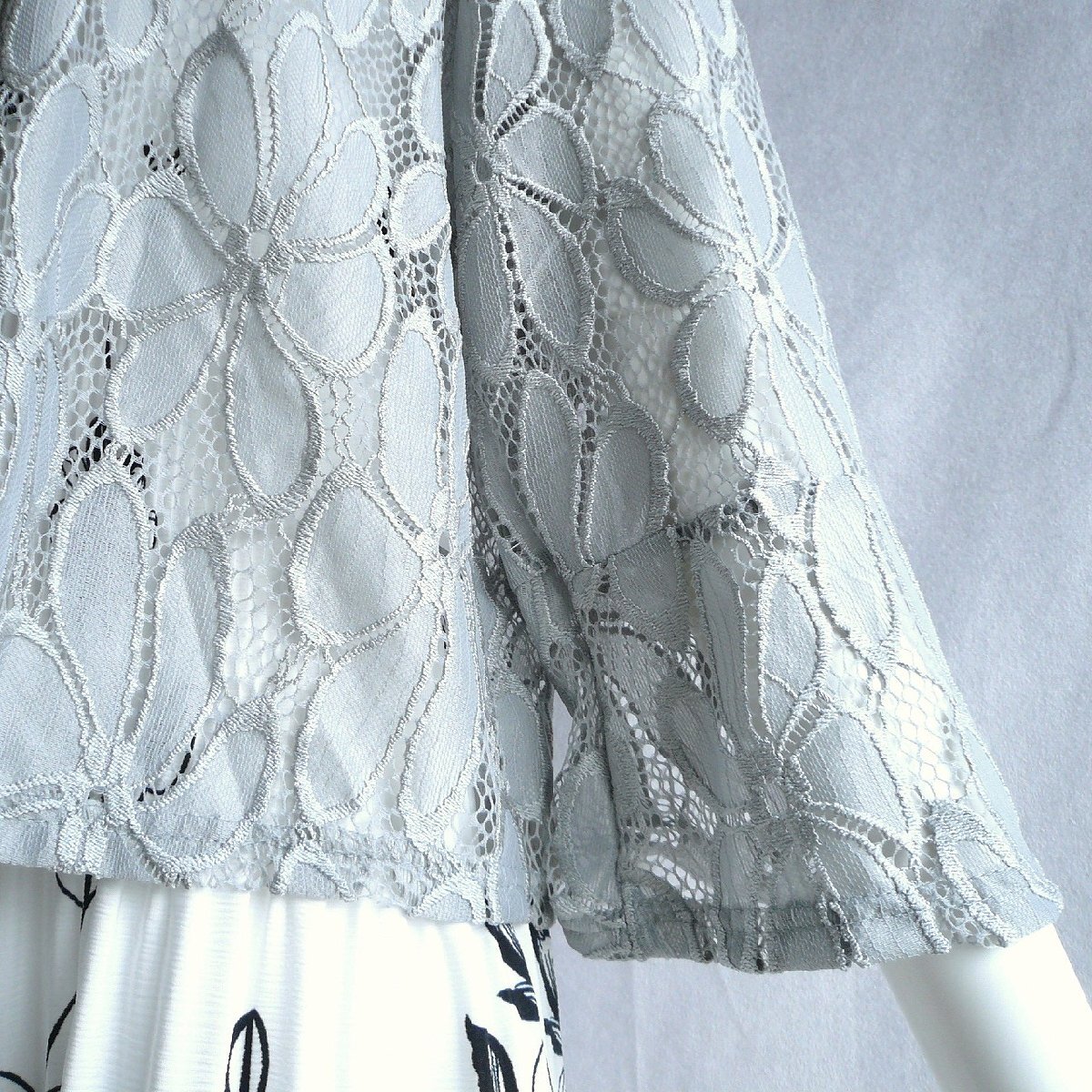 新品 9602 ML カットワーク 刺繍 クロシェ レース フレア ジャケット 春 夏 秋 グレー レディース ノーカラー 七分袖 50代 60代 70代