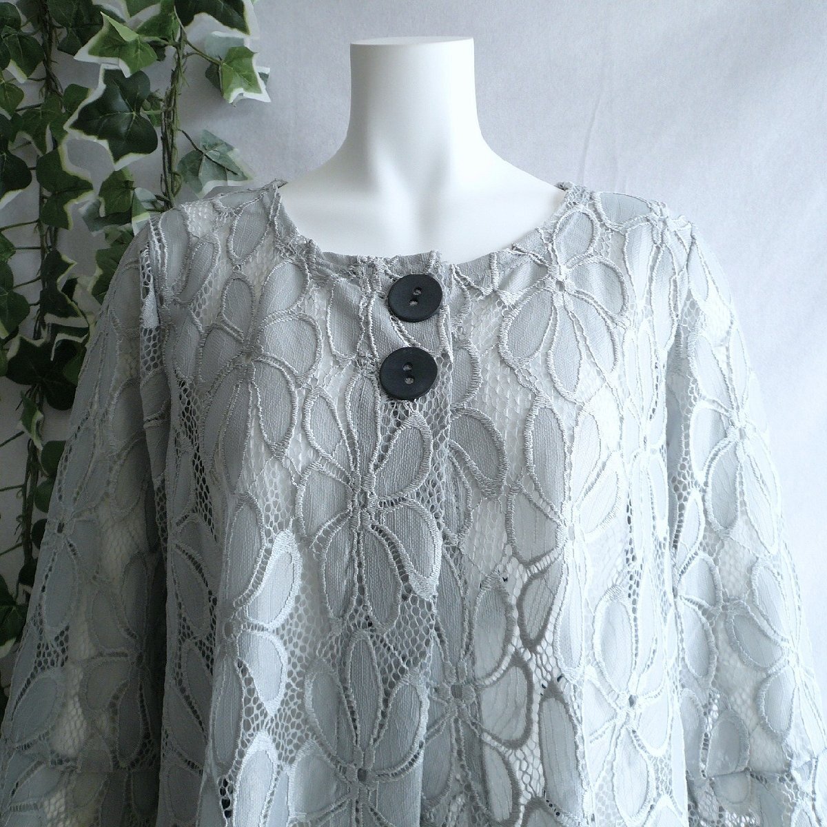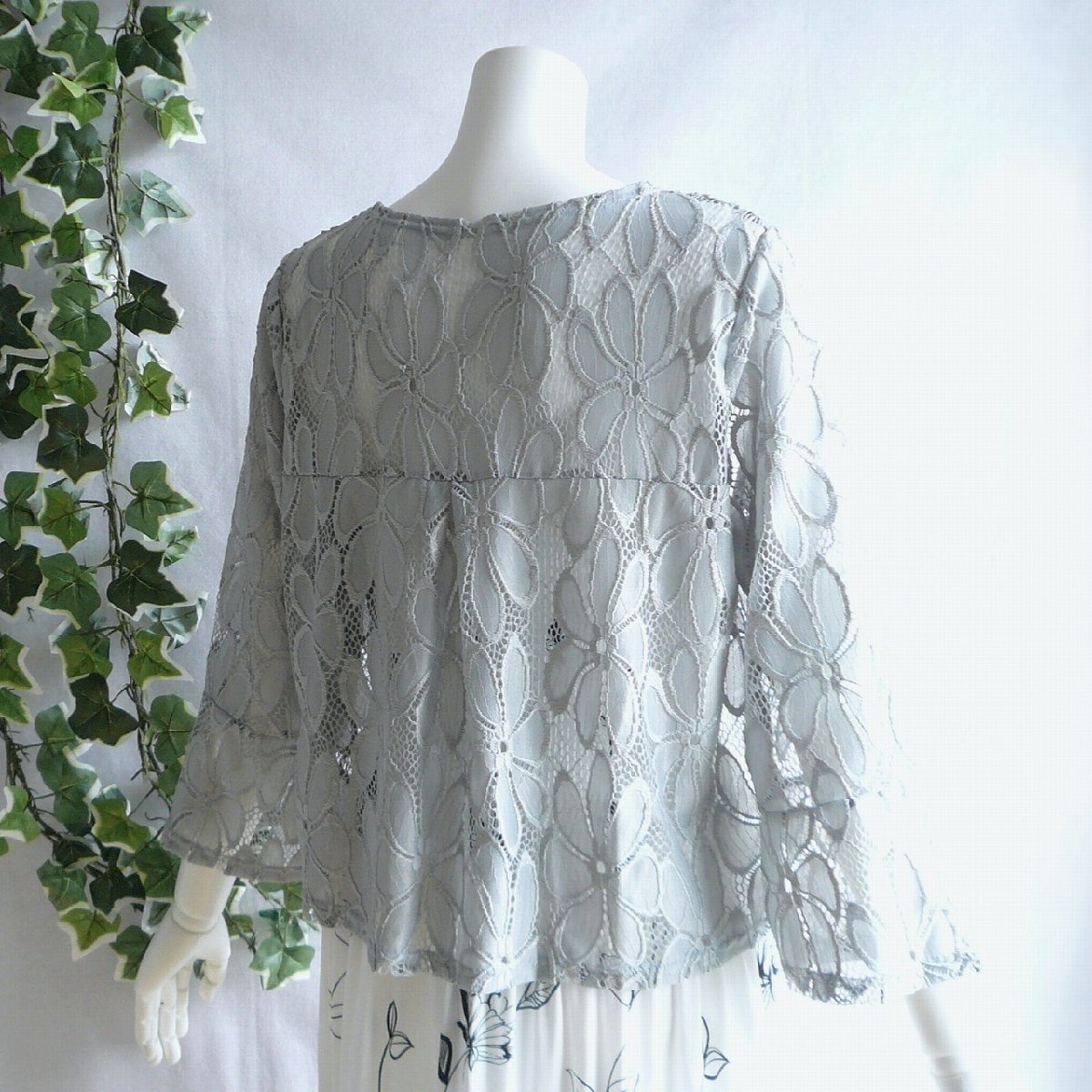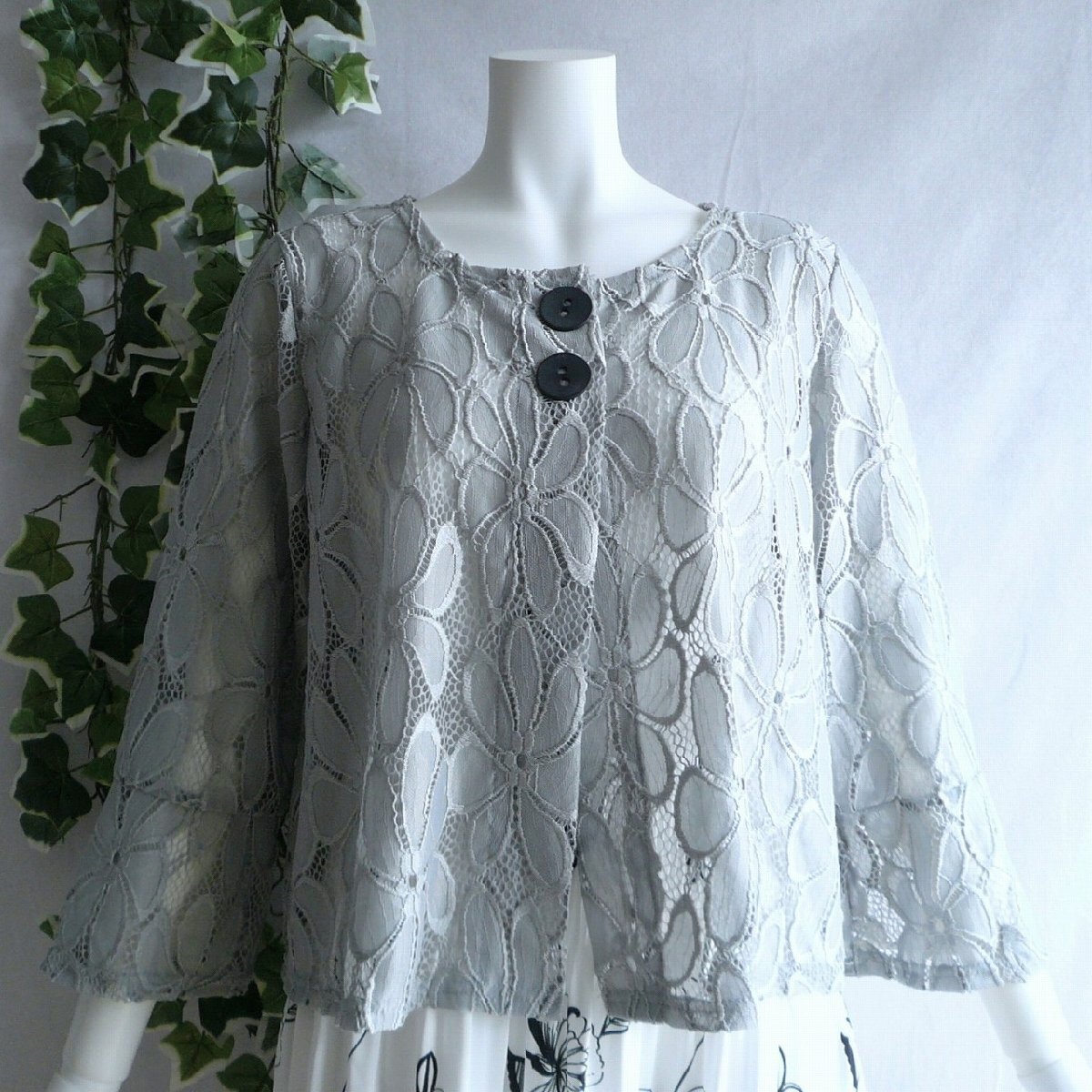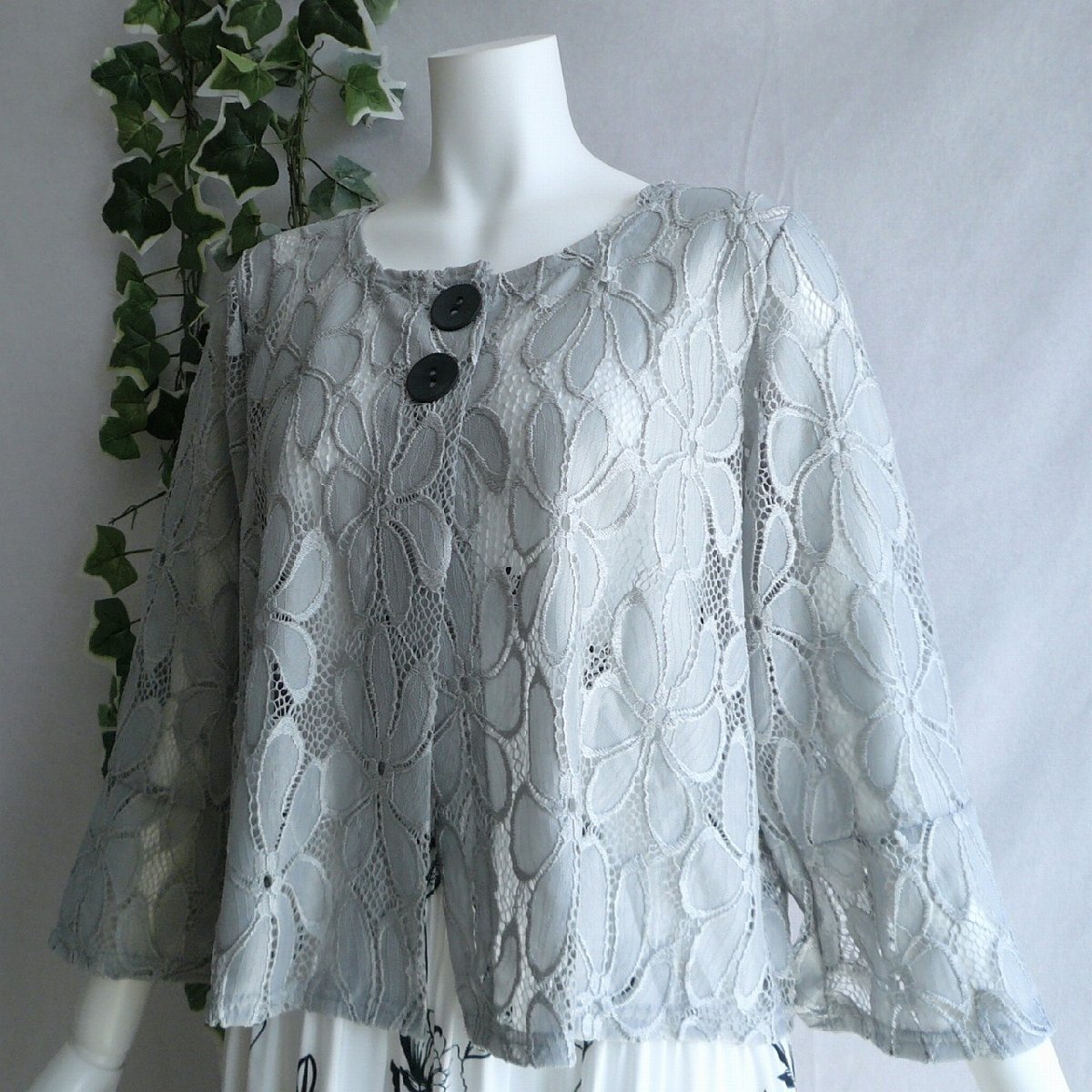 新品 9602 ML カットワーク 刺繍 クロシェ レース フレア ジャケット 春 夏 秋 グレー レディース ノーカラー 七分袖 50代 60代 70代