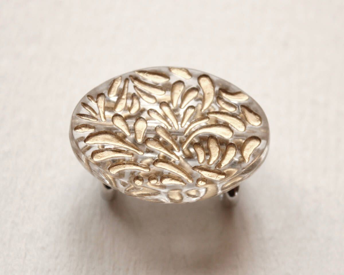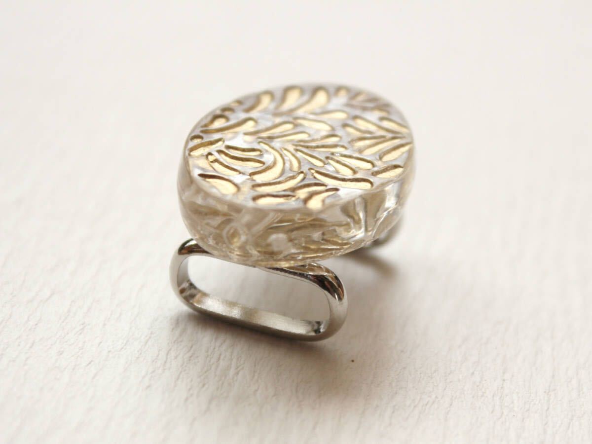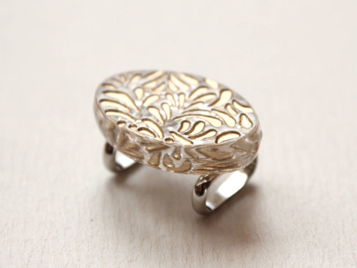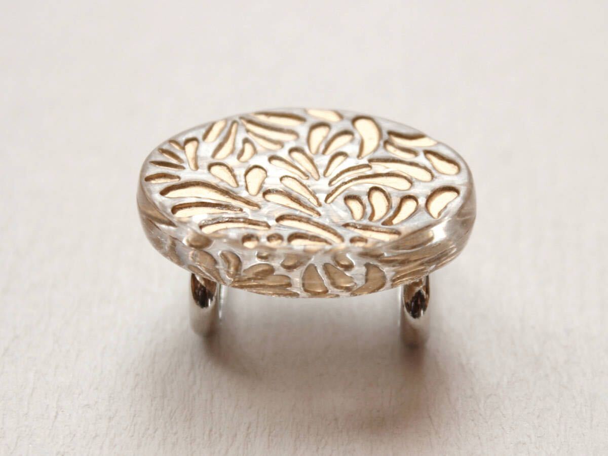 クリア樹脂に落ち着いた色目のゴールドで模様が描かれています。