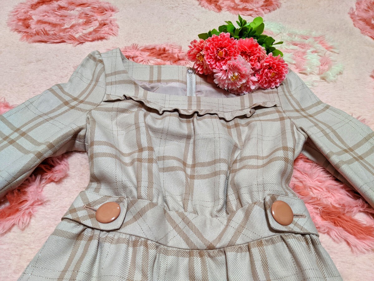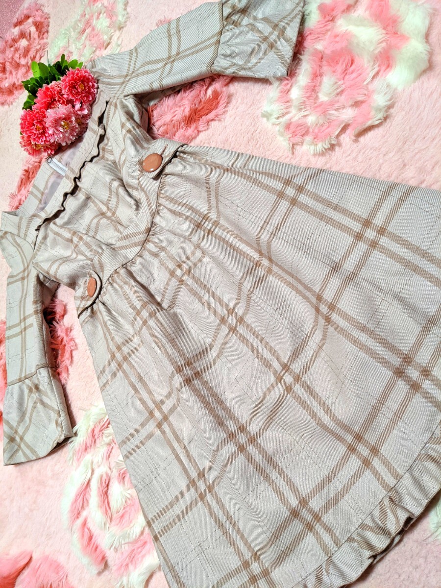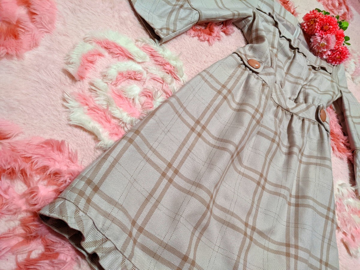 しっかりした濁りピンク生地に大きなチェックにキラキララメいりで襟と裾にフリル付きで可愛らしいお洋服なので良かったらご購入よろしくお願いします!
