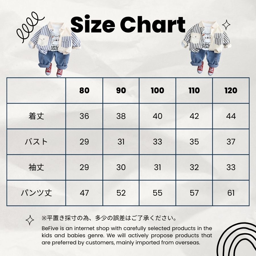 | 商品名 | ブルー 110cm 3点セット 長袖 ストライプシャツ くまさん ロンT デニムパンツ 長ズボン 上下セット セットアップ 韓国子供服 男の子 春秋 80cm 90cm 100cm 110cm 120cm |