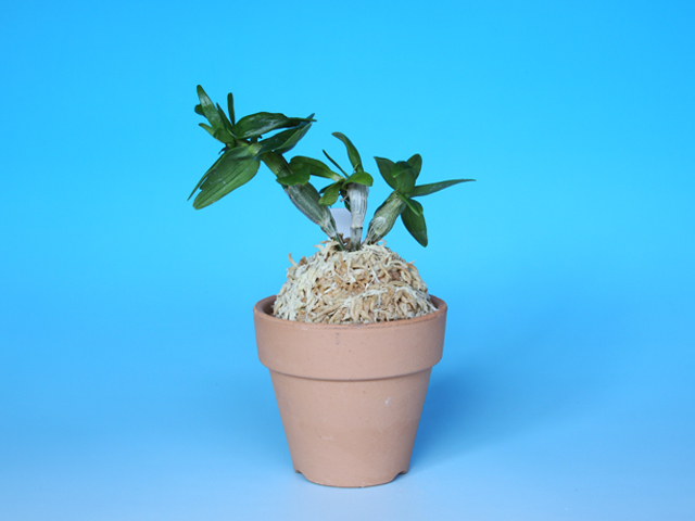 撮影前に根を確認して2号鉢に植え替えて消毒を済ませてあります。