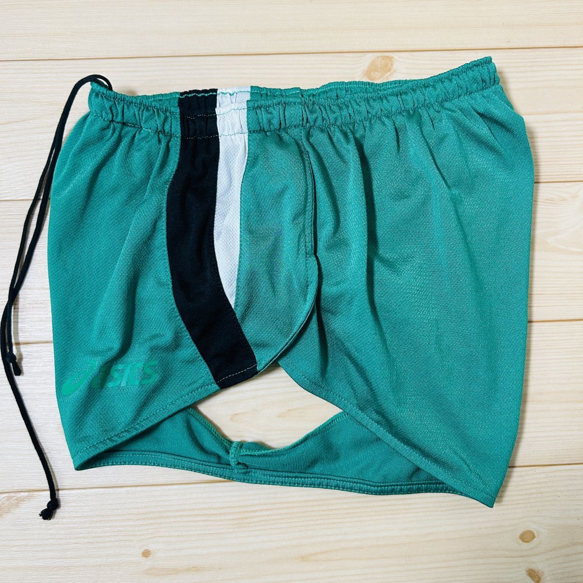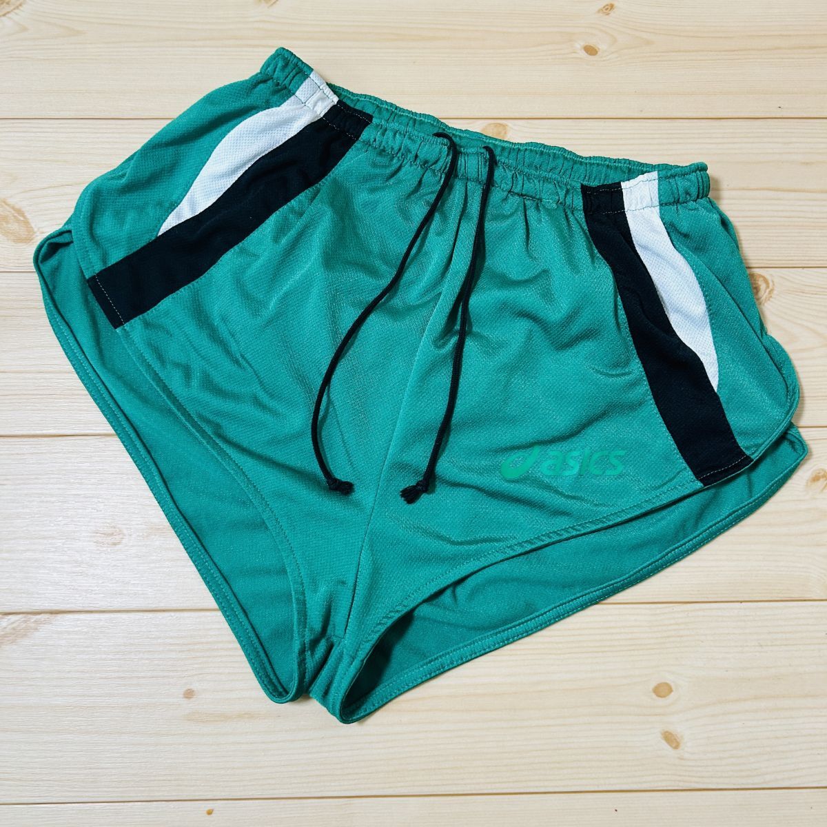 ◎asics アシックス 陸上 ベリーショートパンツ ジャージ ユニフォーム サイドスリット ランパン 競技用 レディース 緑 Mサイズ◆M28
