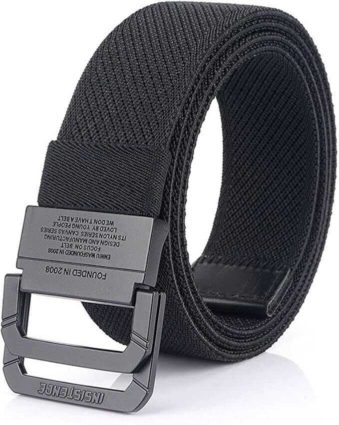 ナイロンベルト Dリングベルト 作業着 ウエスト バックル フリーサイズ 軽量 調整可能(PD黒)