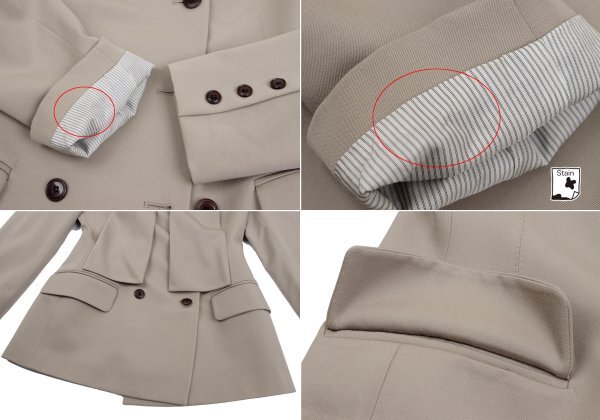 | コンディション | ジャケット:肩パッドあり。右袖裏に薄シミ、裏地に変色があります(写真参照)。その他目立ったシミ、汚れ、ほつれ等なくいい状態です。クリーニング済み。 |