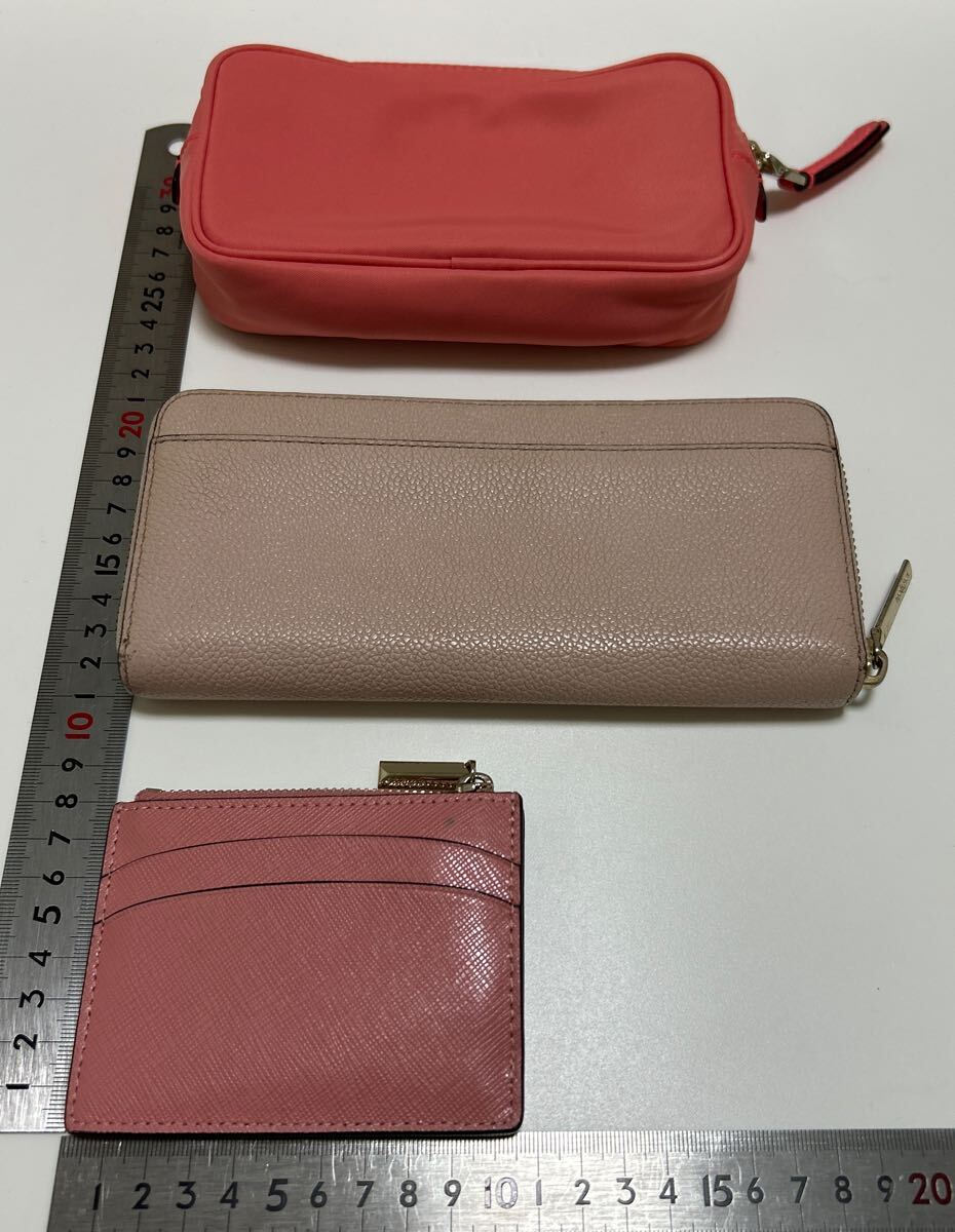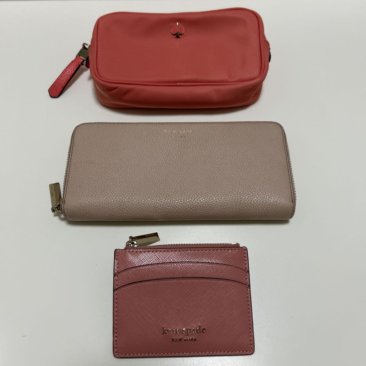★kate spade ケイトスペード 長財布&小物 ピンク系 3点SET★ ラウンドジップ 長財布 3WAY コインケース ポーチ 【送料無料】0923