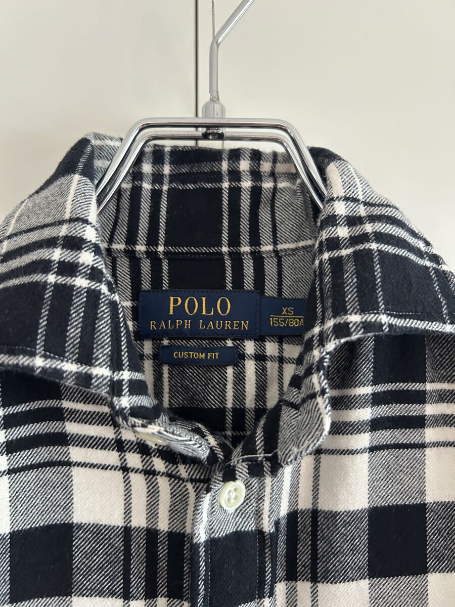 Polo Ralph Lauren women’s custom fit flannel shirt. Black and white check pattern, slim silhouette, crafted from 100% cotton. A versatile and timeless vintage piece.