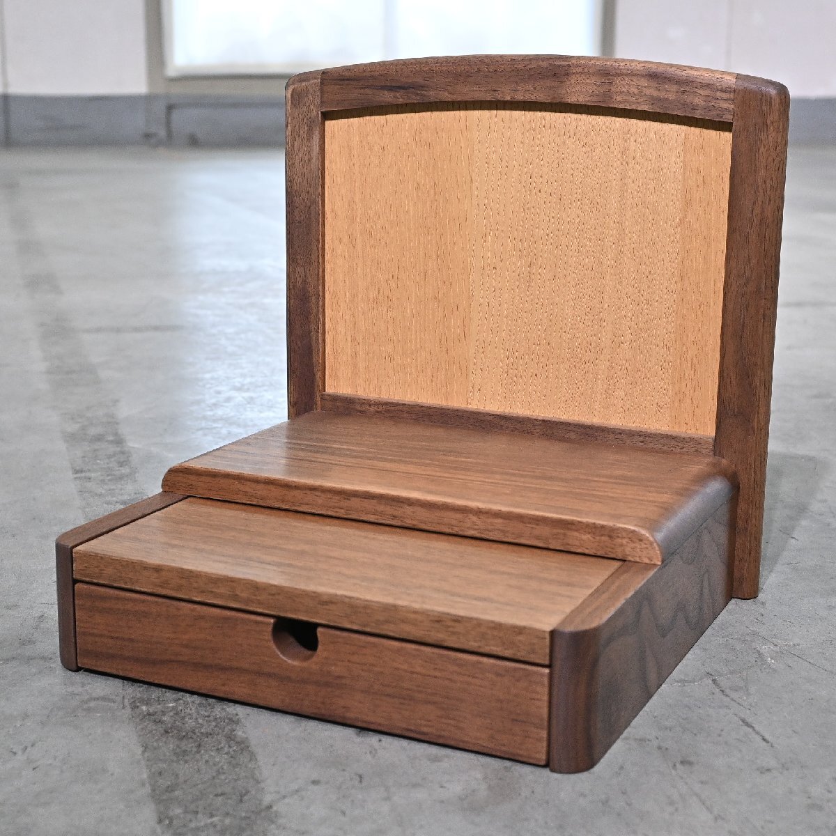 展示品 久和屋 6万「プレッソ 33」てもと仏壇A ウォールナット無垢材 収納 引き出し リビング 居間 線香 数珠 卓上 ミニ 小型 小物 モダン
