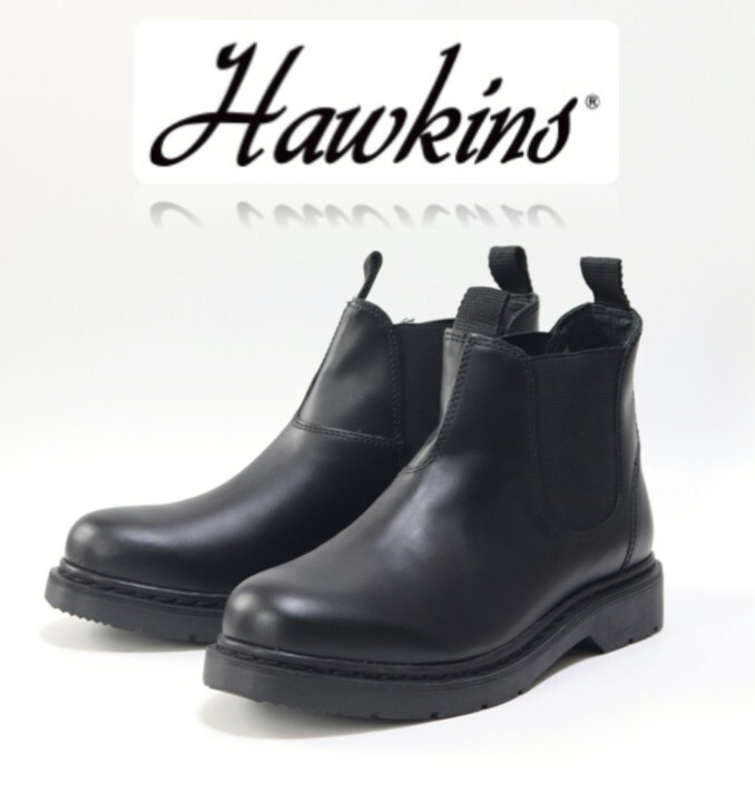 新品【HAWKINS ホーキンス】天然皮革 サイドゴアブーツ 黒 24.5cm v7585-1509 |