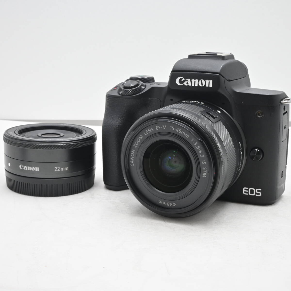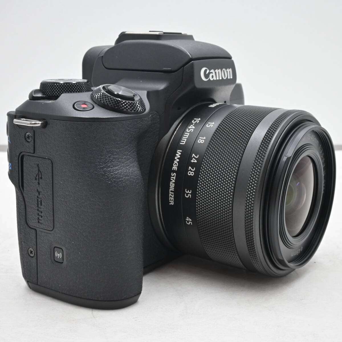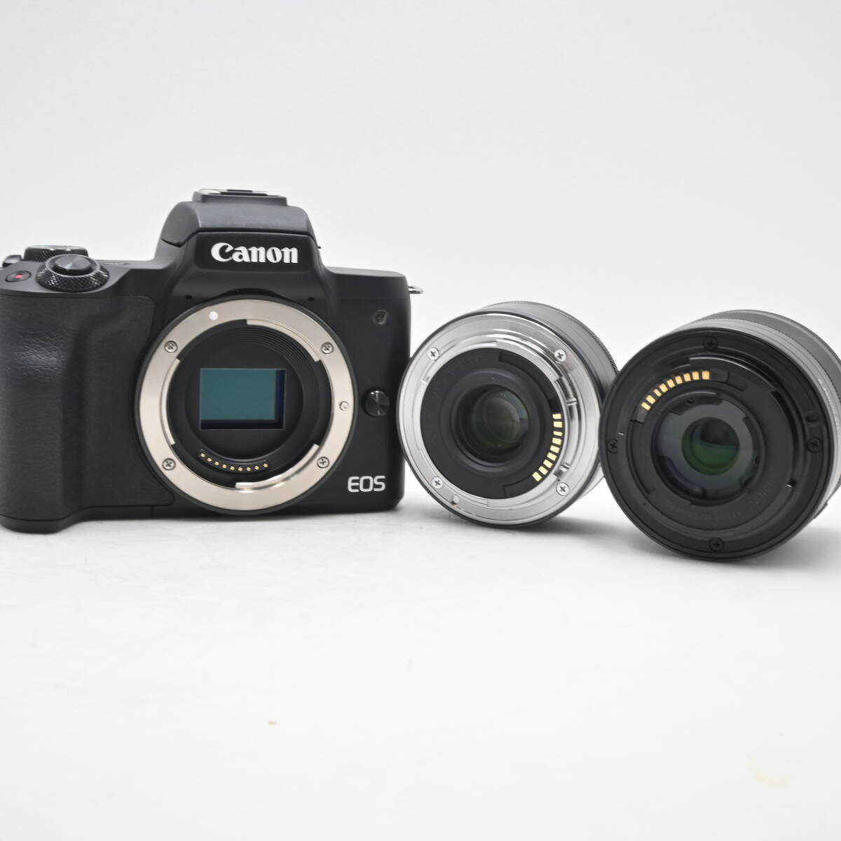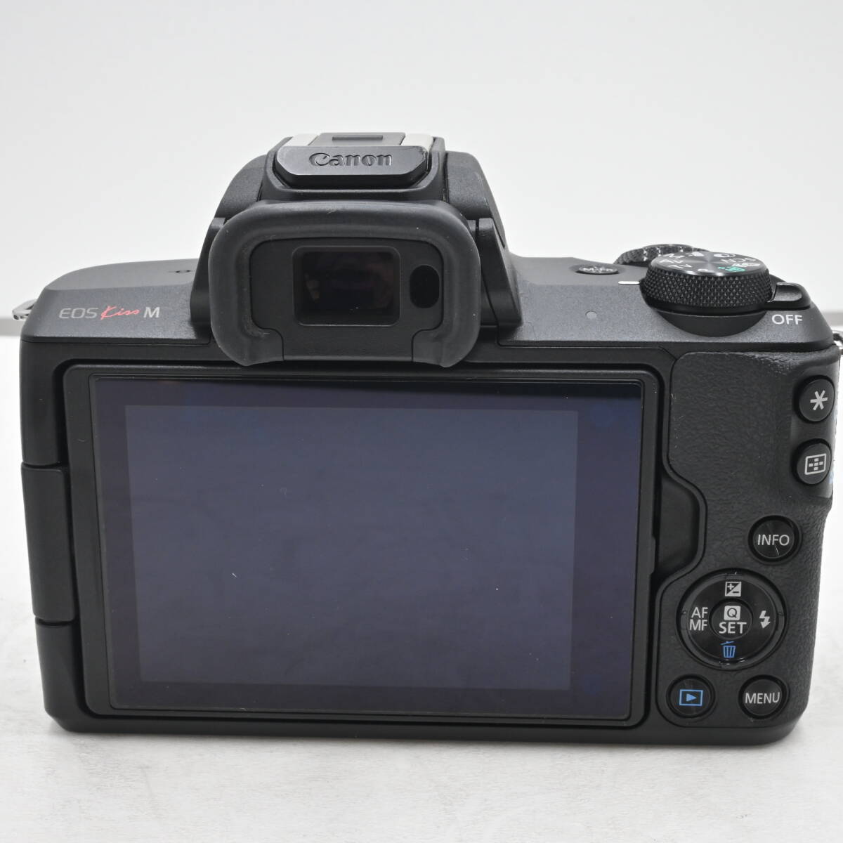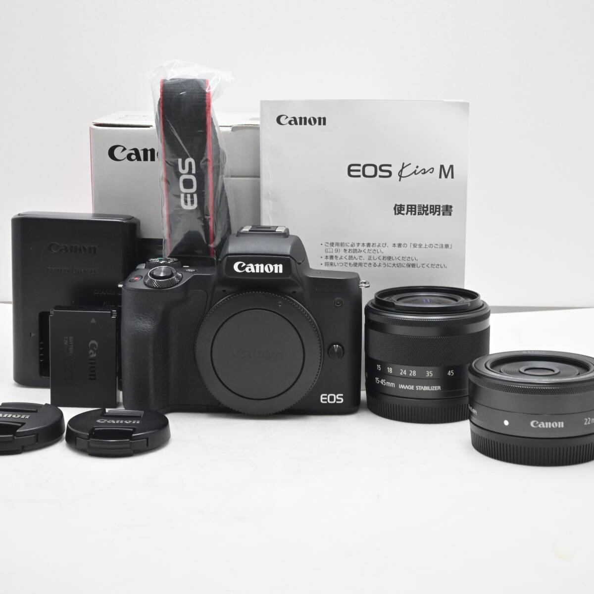 使用感の少ない極上品です。付属品:ストラップ、取扱説明書、バッテリー1個、充電器、レンズフロントキャップ、レンズリアキャップ、ボディキャップ、元箱【コンディション】 ■外観 外観は通常使用に伴うすれ傷さえほぼ無く、大変キレイです。液晶画面にはフィルムが貼っており、画面はきれいです。その他目立つような大きなキズやアタリはありません。詳細は写真にてご確認ください。またコンディションは商品自体を指しており、フードや付属品の商品状態は含まれませんのでご留意の程お願いいたします。■光学 ファインダー内は撮影に影響するカビやクモリもなく視認性は良好です。付属品は写真のものが全てです。■動作 動作は専門店にて確認済みです。■初期不良 商品に初期動作不良や何か不具合がありましたら30日以内であれば返品返金対応致しますので、すぐに(低い)評価を付けることはお控えください。中古品のため商品状態にご了承頂いた上でご検討をお願い致します。EOS Kiss M ダブルレンズキット (ブラック)