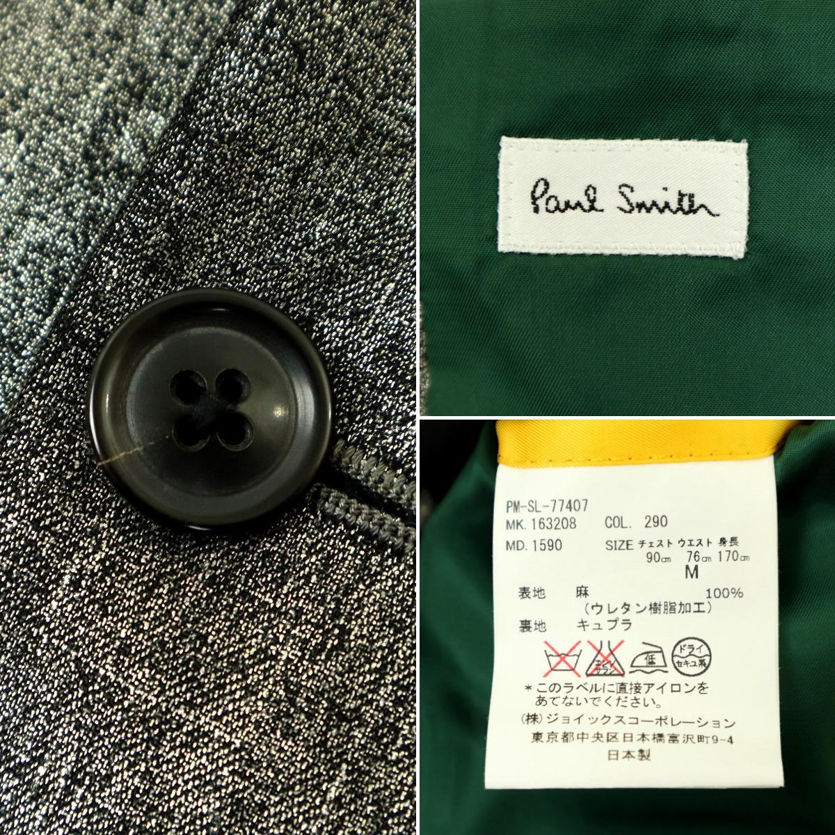 ブランド名:Paul Smith サイズ:M ジャケット 肩幅:39.5cm 身幅:47cm 袖丈:61cm 着丈:69cm 裄丈:-cm パンツ ウエスト:37.5cm 股上 :28cm 股下 :70cm 裾幅 :18.5cm 色 :グレー系 状態:多少使用感はございますが、ご使用に差支えのない商品です(写真でご確認ください) ※状態の確認は慎重に行っておりますが、僅かな薄汚れや、キズ、糸飛びなどがある場合がございます、古着(中古品)にご理解いただける方のみ入札お願いいたします |