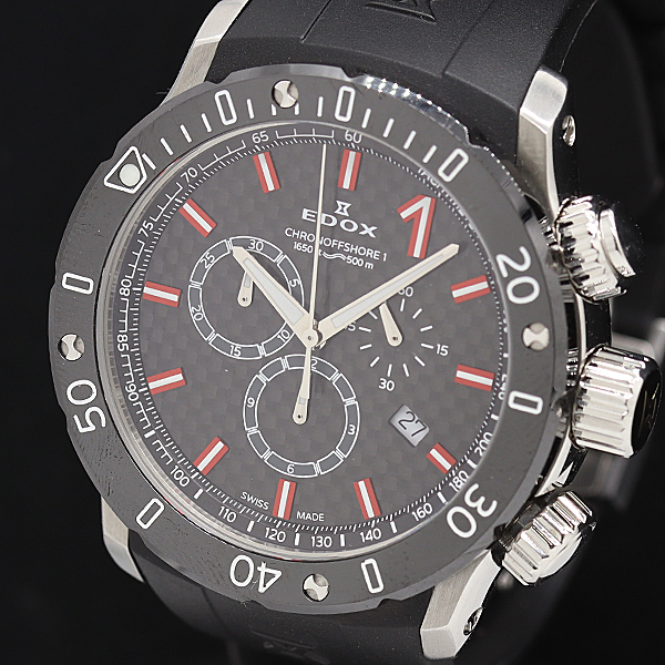 1円 稼働 良品 エドックス クロノオフショア1 クロノグラフ 10221 SS 腕時計 0155400 9YBT IGR