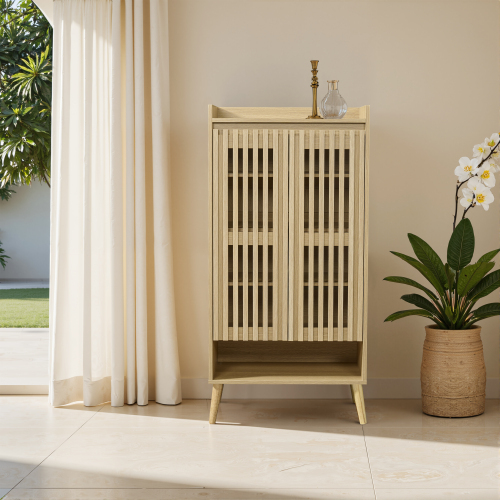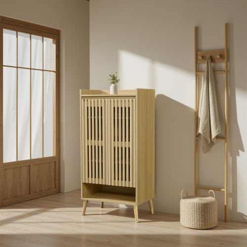 オーク色の玄関キャビネット、下駄箱、大容量収納キャビネット
