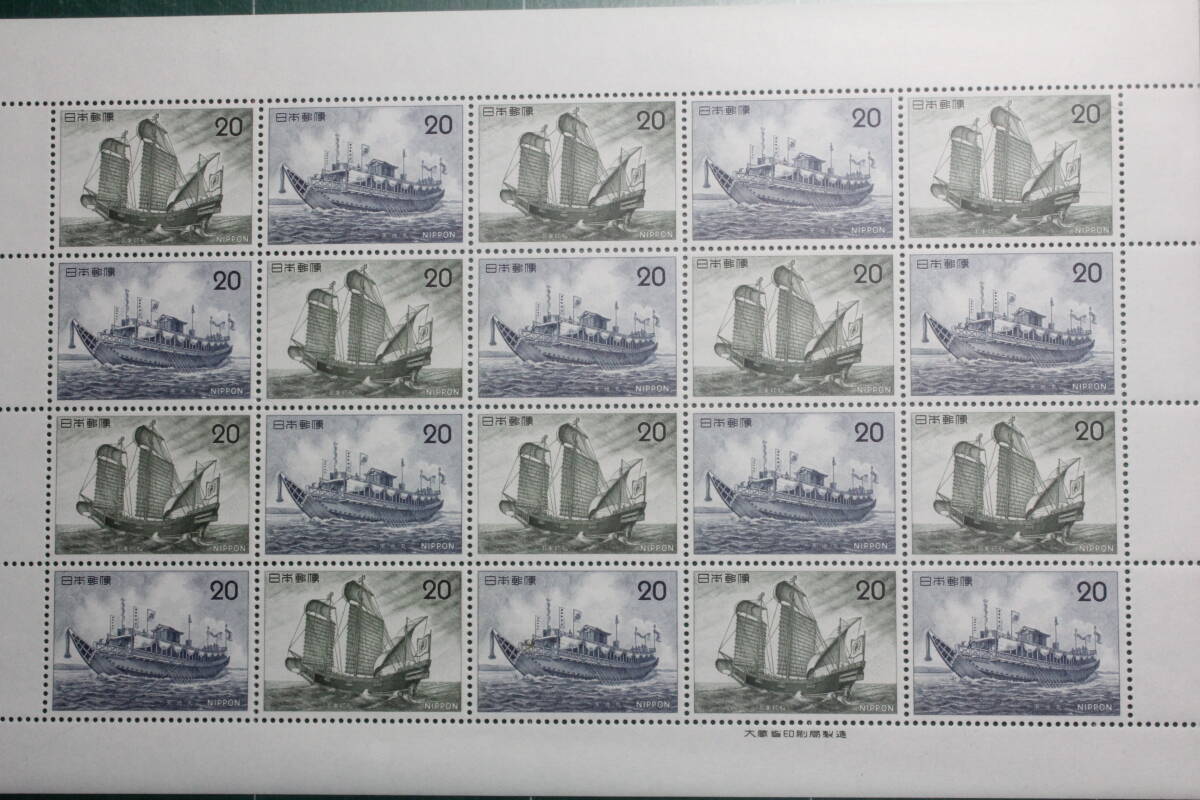 ・船シリーズ 第2集 1975年発行の20円切手の20面のシート1枚です。