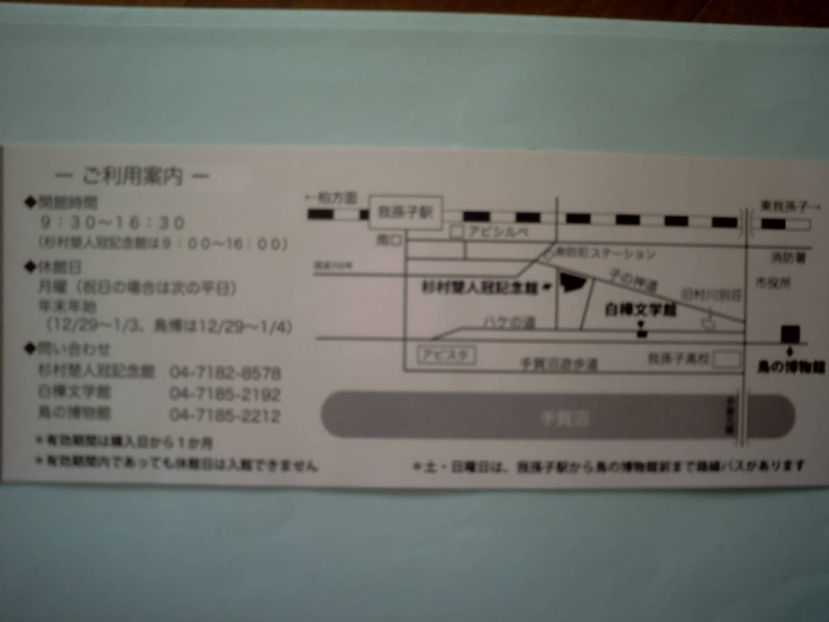 千葉県 我孫子市にある「杉村楚人冠記念館・白樺文学館・鳥の博物館」の3館共通券
