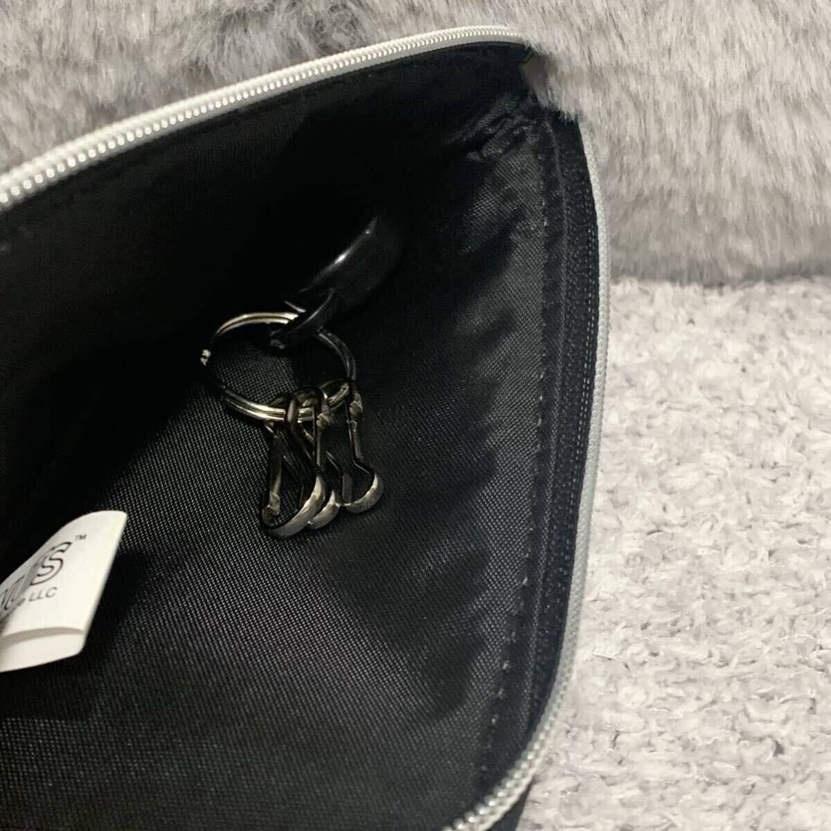 ファスナー内はカギ、多少の小銭やお札も収納可能です。カギにもリールが付いて使いやすい。