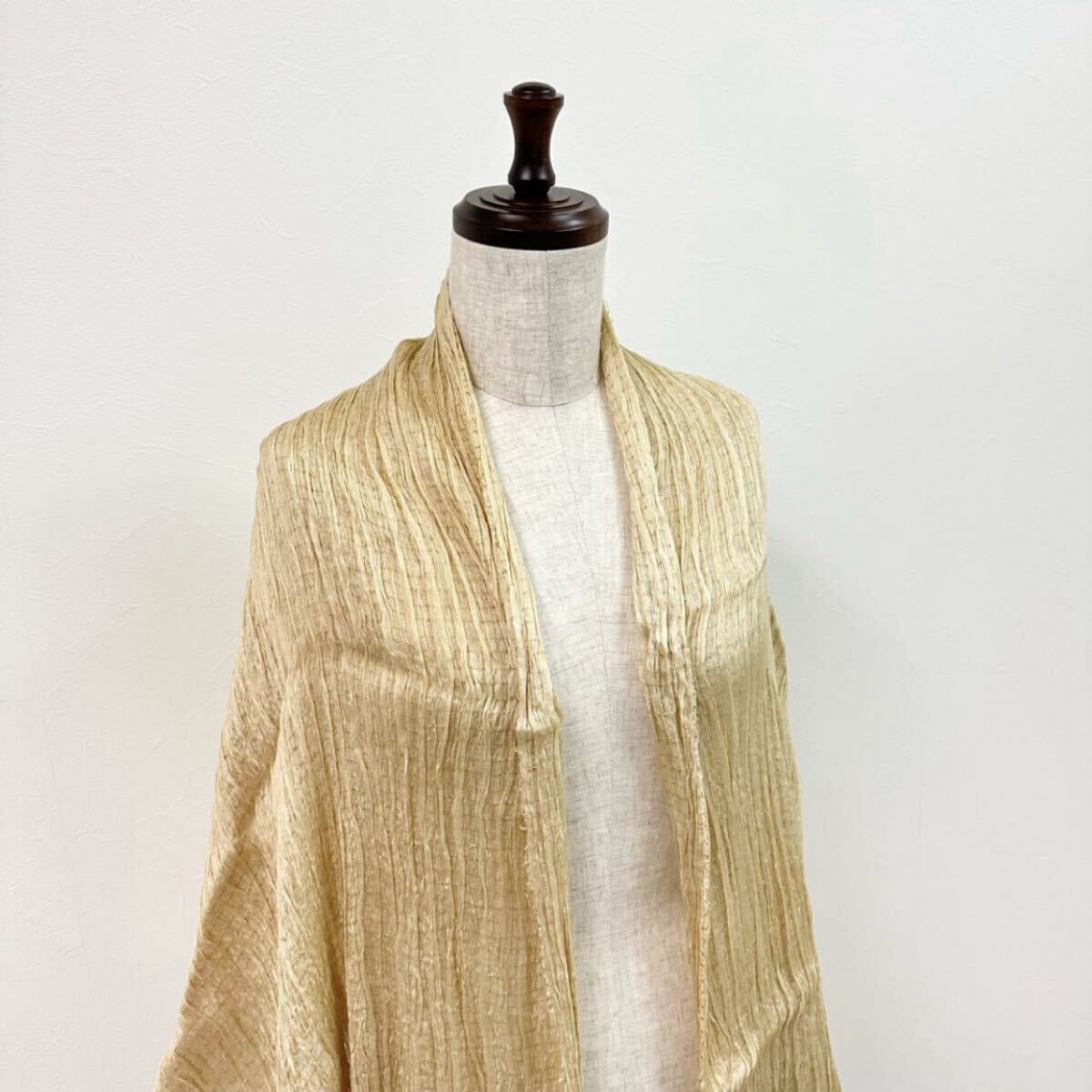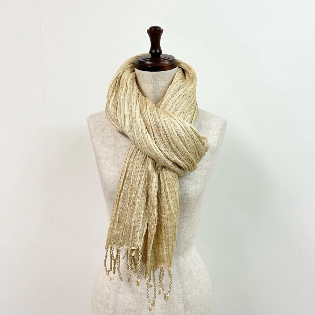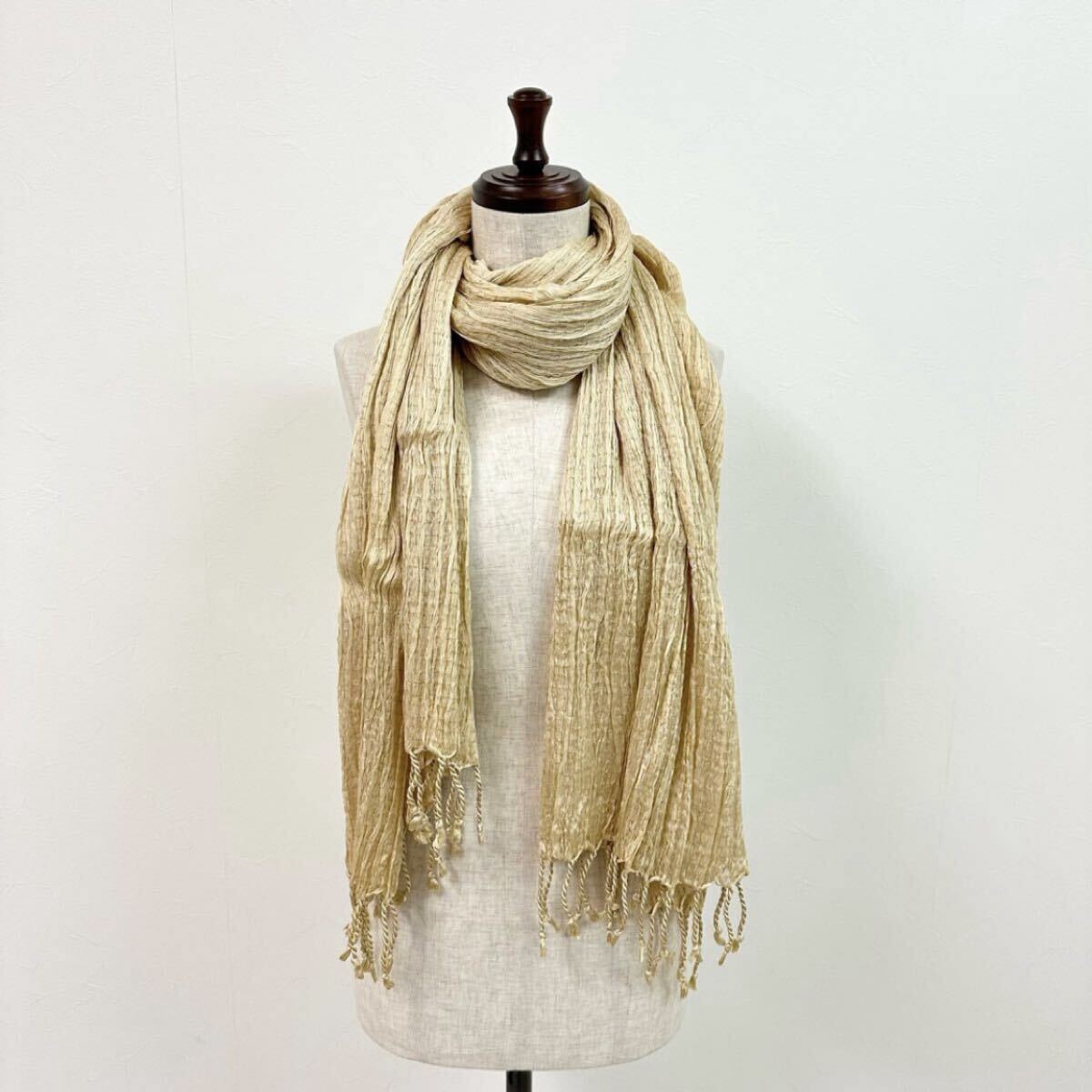 ISSEY MIYAKE イッセイミヤケ プリーツ ストール MADE IN JAPAN 日本製 ベージュ 系 サイズ 50cm x 172cm 位 701