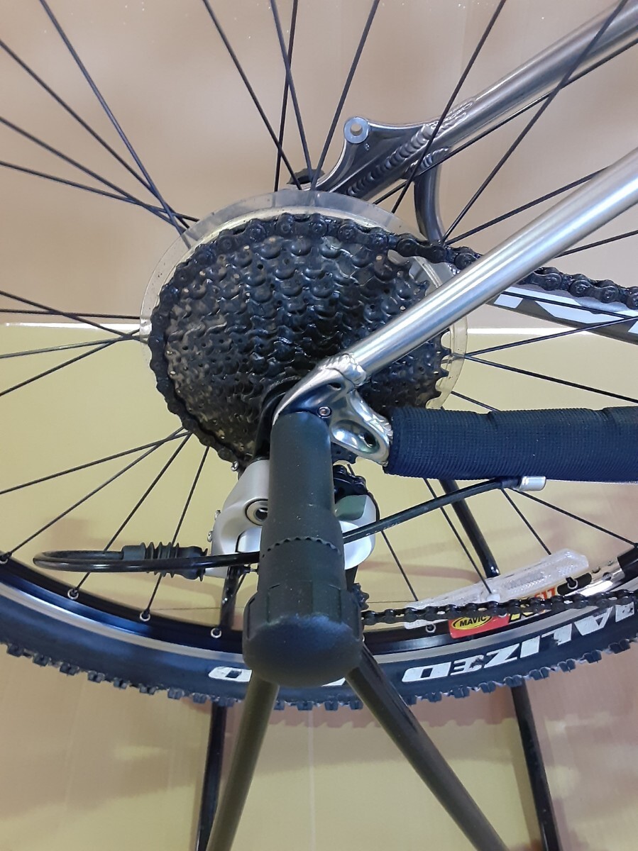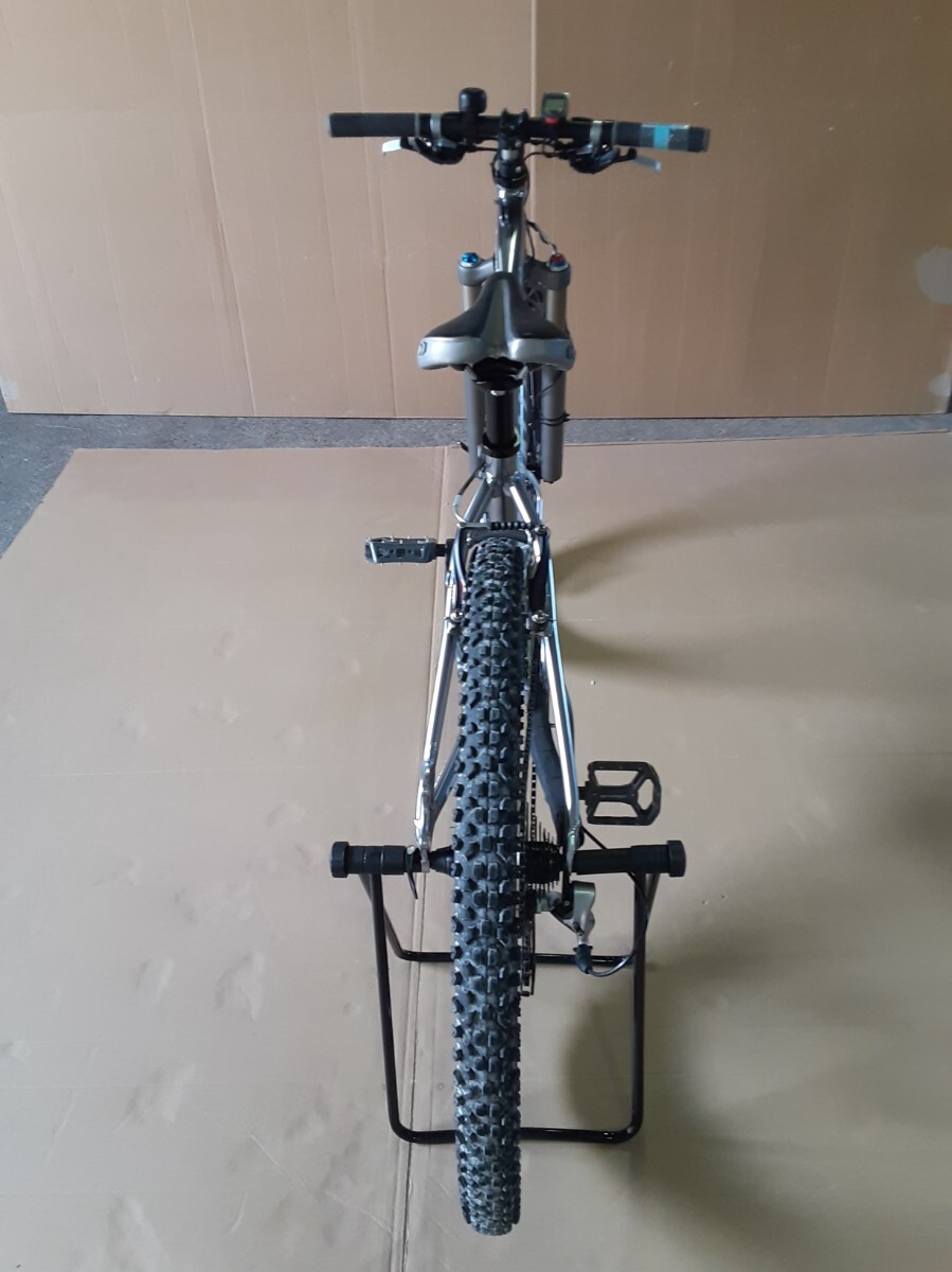 長期保管品の為前後タイヤの黒いプラスチックのエアーバルブ破損の為空気入りませんので交換修理必要になります。タイヤは大丈夫です。