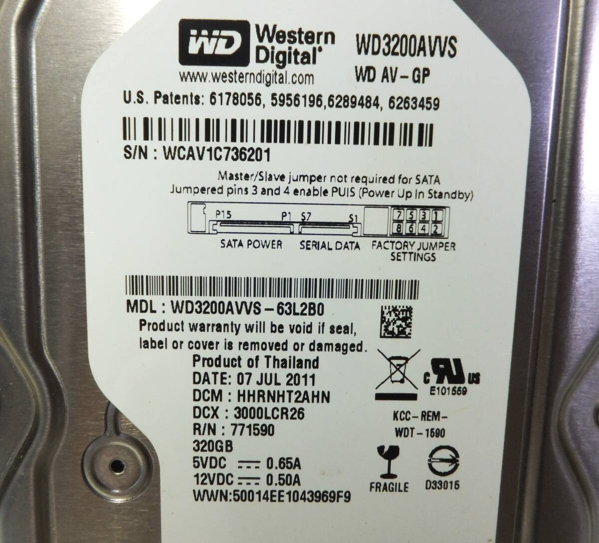 ハードディスク Western Digital WD3200AVVS 320GB(レコーダー D-BZ510から外し)中古 8 | |