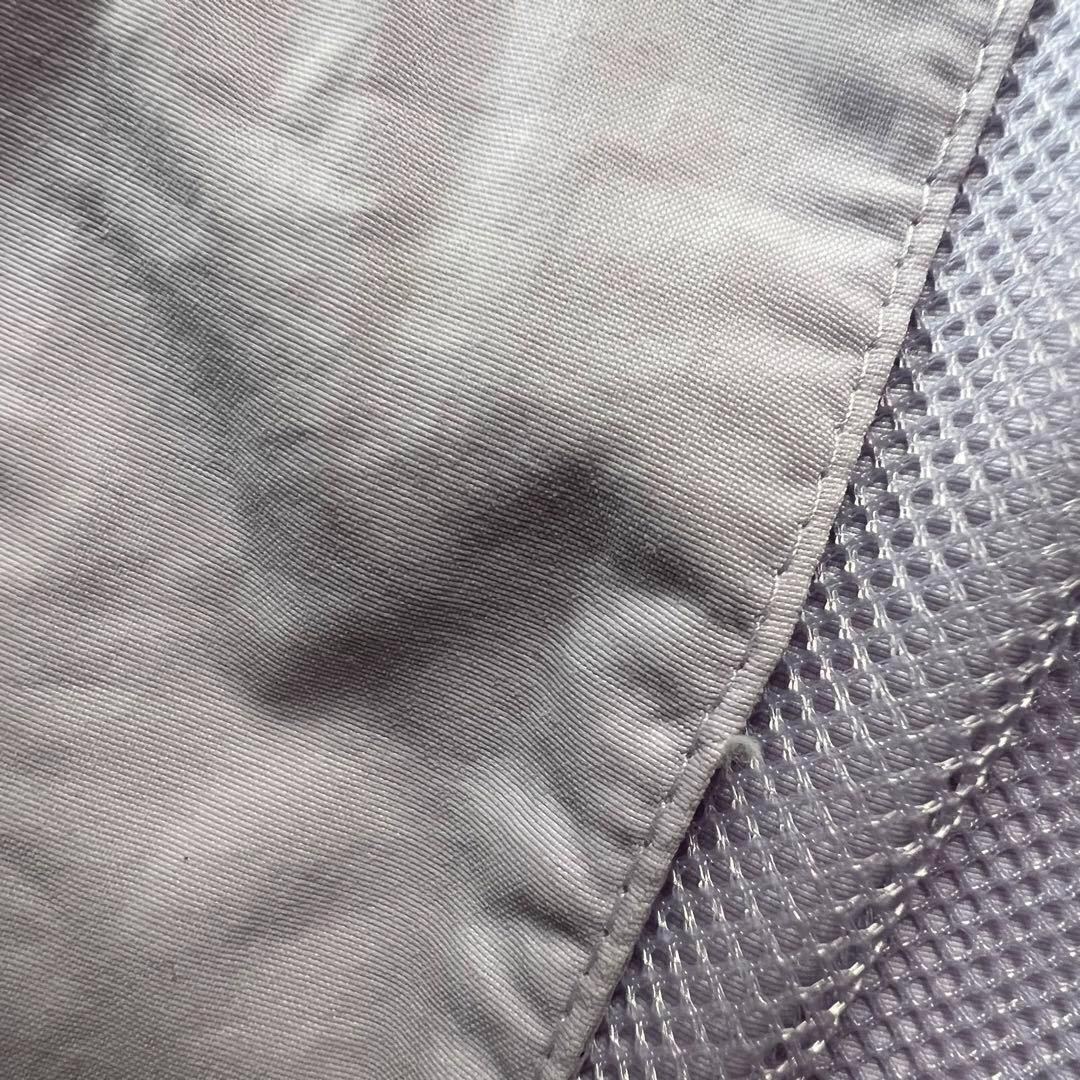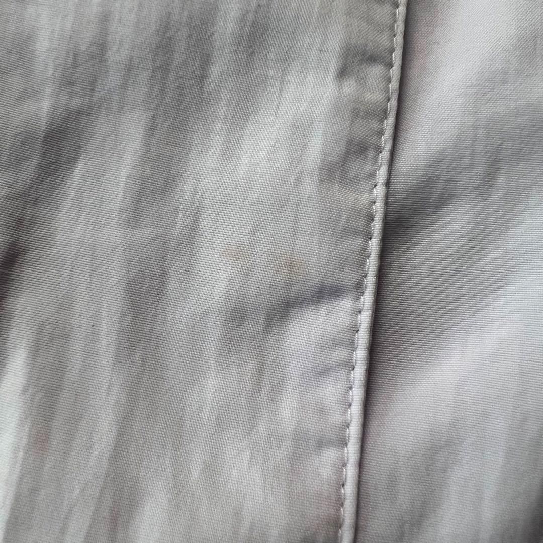 こちらの商品は表面にほつれ、表面、内側裾に汚れ、ボタン金具にスレ汚れがございますので、写真をご参照下さい。