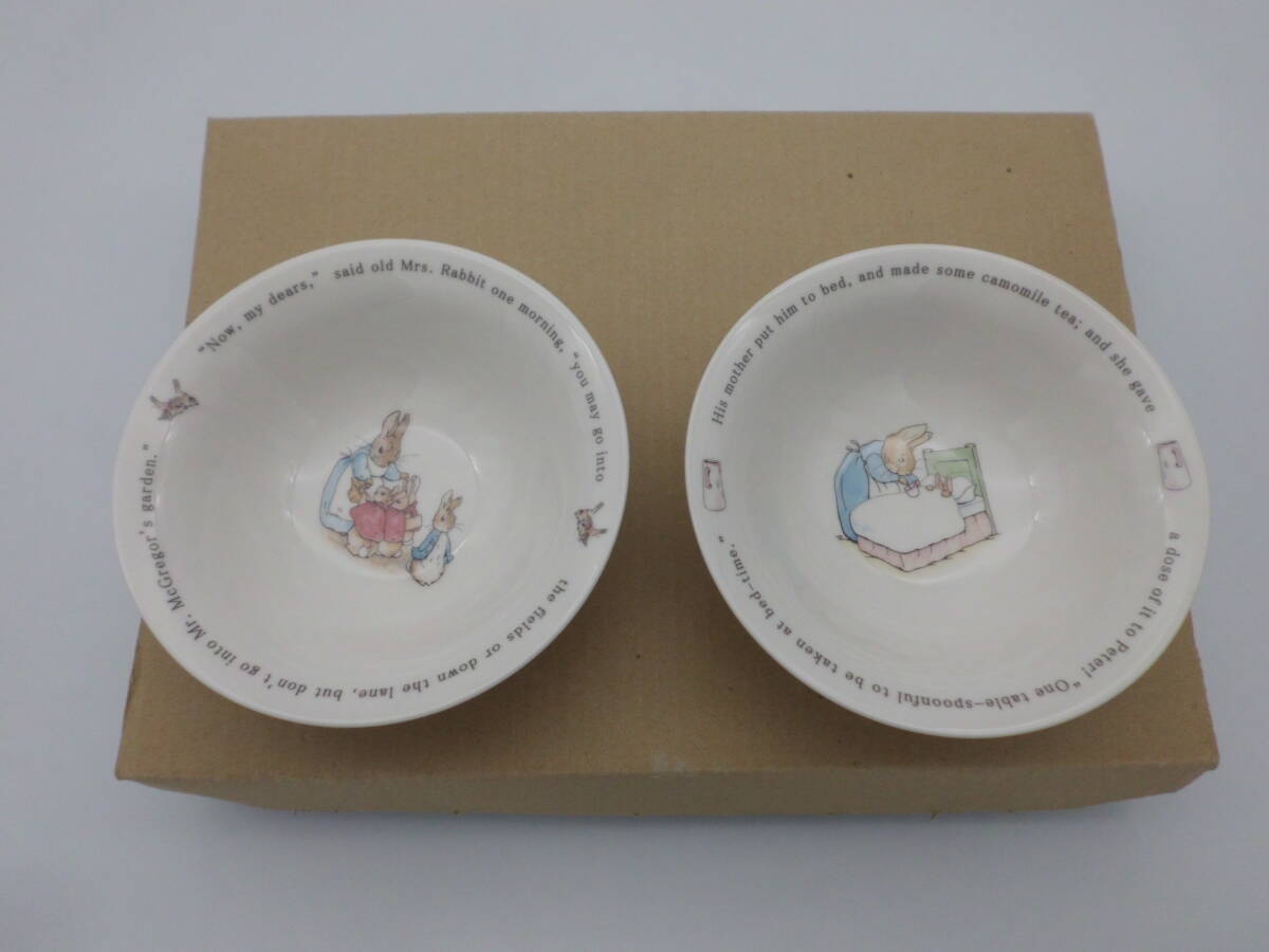 ■ ピーターラビット(ファミリー&ミセスラビット)サラダボウル(2個)セット  サイズ(ピーターラビット・サラダボウル)直径約 16.4cm 深さ約 5cm 高さ約 4.5cm (新品、未使用の商品ですが長期保管の商品の為スレ・汚れ等がある場合がございます。)細かく確認の方が出来ておりません。お気になさる方は入札の方はご遠慮下さい。(撮影の為、箱から出して撮影の方させて頂きました。)ご理解の程宜しくお願い致します。(写真に映っているもが全てです。)(完品をお探しの方及び細かな事お気になさる方及び神経質な方及び日本語がご理解出来ない方は入札の方はご遠慮下さい。