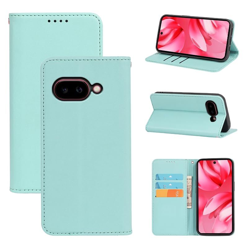 適用 Google Pixel 9A ケース 手帳型 グーグルピクセル9a 用 手帳型ケース Pixel9a 用 スマホケース カバー 手帳型 PUレザー カード収納 財布型 耐衝撃 ケース マグネット スタンド機能付き 5色(Google Pixel 9a 用 ケース手帳型) (ミントグリーン)
