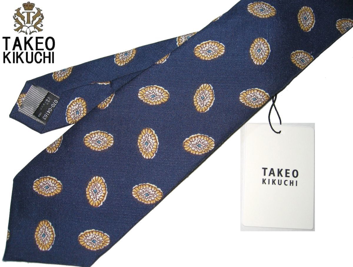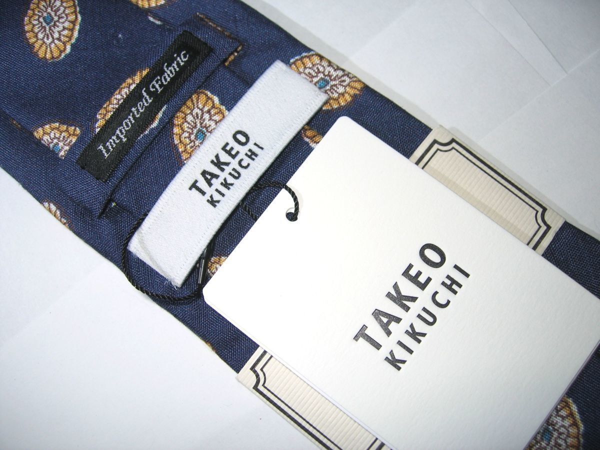 新品 定価¥17,600 ▼ タケオキクチ TAKEO KIKUCHI ▼ イタリア製生地 フォサッティ ネクタイ 日本製ハンドメイド 紺 シルク ネイビー