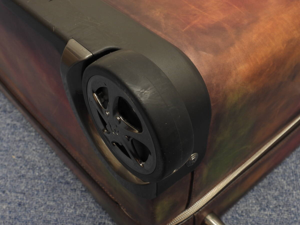 : ボディは使用による薄スレ・小傷が全体的に少しございますが、酷いダメージはなく綺麗なほうです。底部角・バッグ淵に薄スレが全体的に少しございます。ハンドルは気になるスレ・汚れ・弱りもなく状態は良いです。収納可能なキャリーグリップは薄スレ・薄汚れが少しございますが、弱りもなく状態は良いです。ローラーは薄スレ・薄汚れが少しございますが、回転もスムースで問題ございません。バッグ内はシミ・汚れもなく綺麗です。ファスナーの開閉はスムースです。金具部分は薄スレ・小傷が少しございますが、メッキ剥げもほとんどなく全体的に綺麗です。