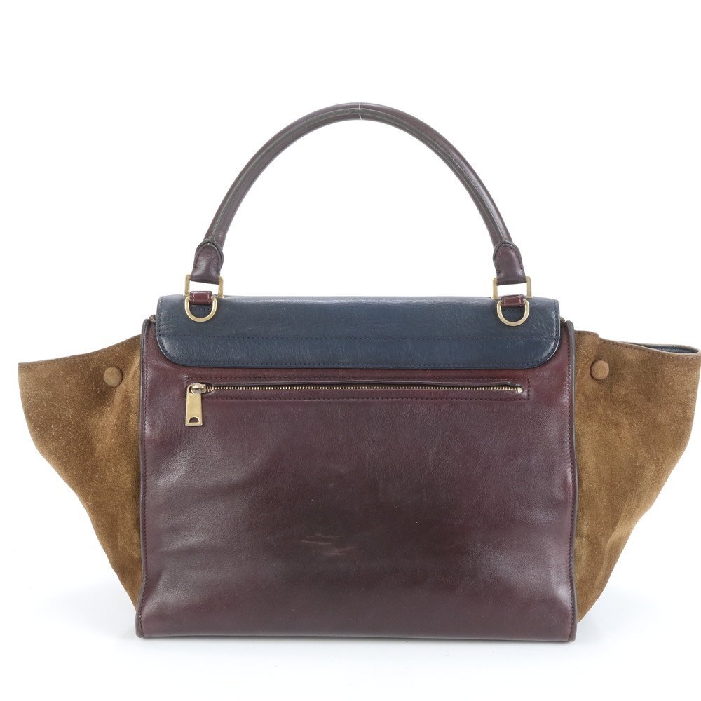 1円■極美品■セリーヌ■トラペーズ ミディアム レザー ハンドバッグ トート 本革 ブラウン 茶色 ネイビー 紺 レディース RRM CT13-6