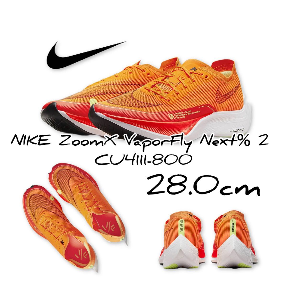 商品名: ナイキ ズームX ヴェイパーフライ ネクスト% 2 NIKE ZoomX VaporFly Next% 2 トータルオレンジ/ブライトクリムゾン/ホワイト CU4111-800