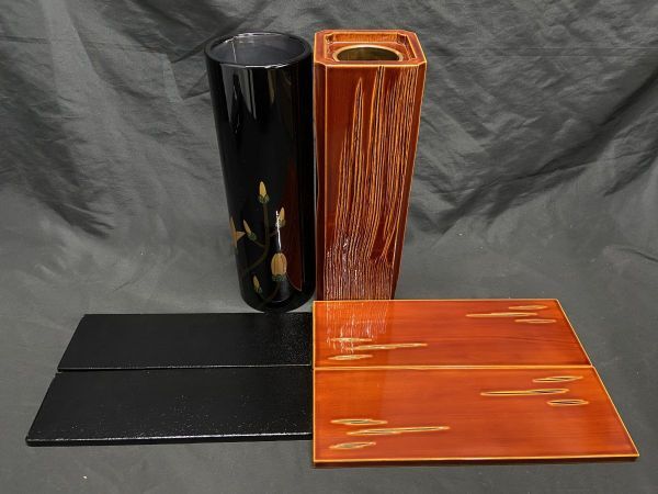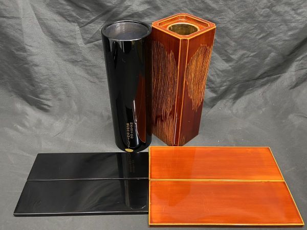 | 【R293】美品 花瓶/花器 うちわ型のお皿 タバコ箱など 飛騨春慶 輪島塗 越前塗 金箔 工芸品 6箱 まとめ売り 和風 和室 インテリア b | ||