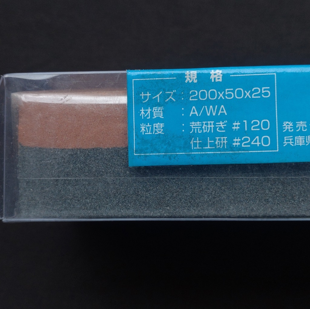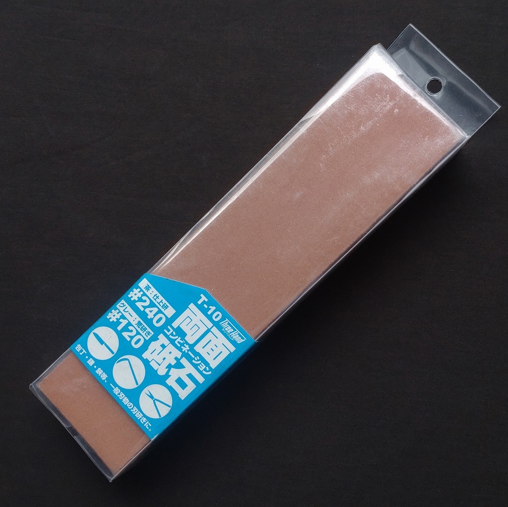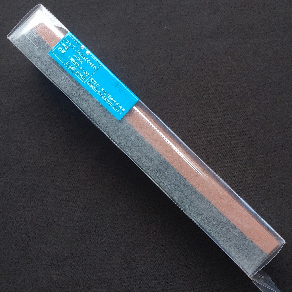 両面砥石 コンビネーション T-10 Three Hand 茶:仕上研 #240 グレー:荒研ぎ #120 サイズ:200×50×25㎜ 未使用長期保管品  【6385】